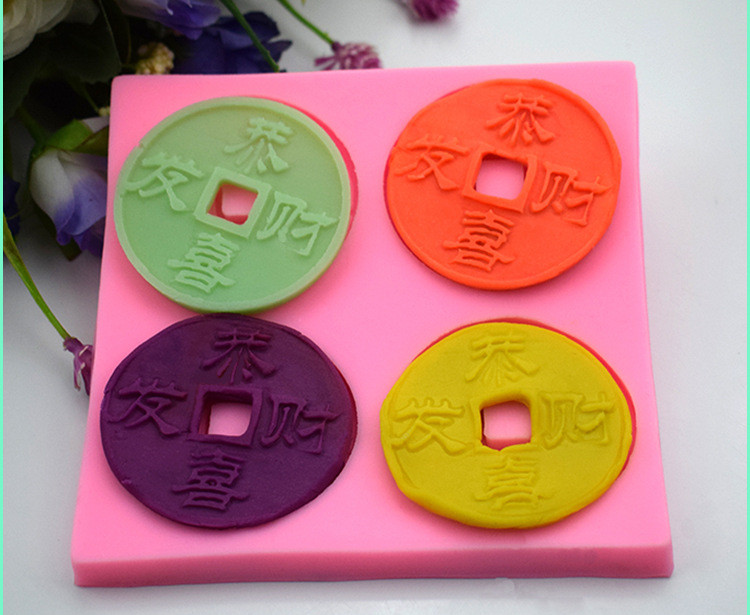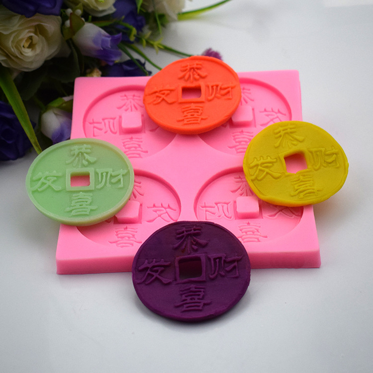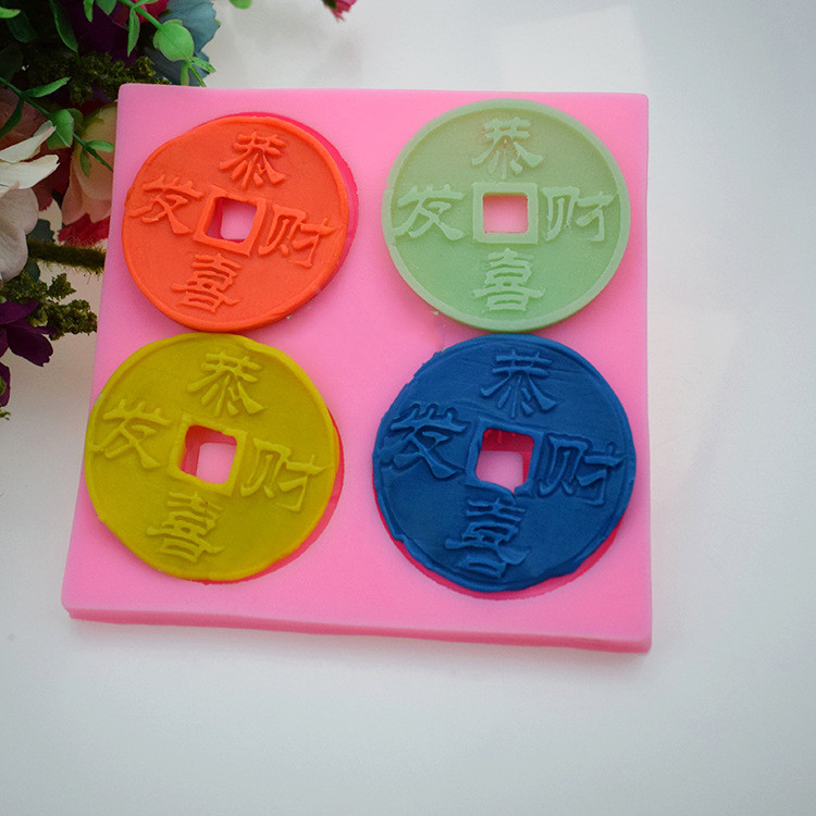 Copper Coins Gongxi Fa Cai Fondant Silicone Clay Mold