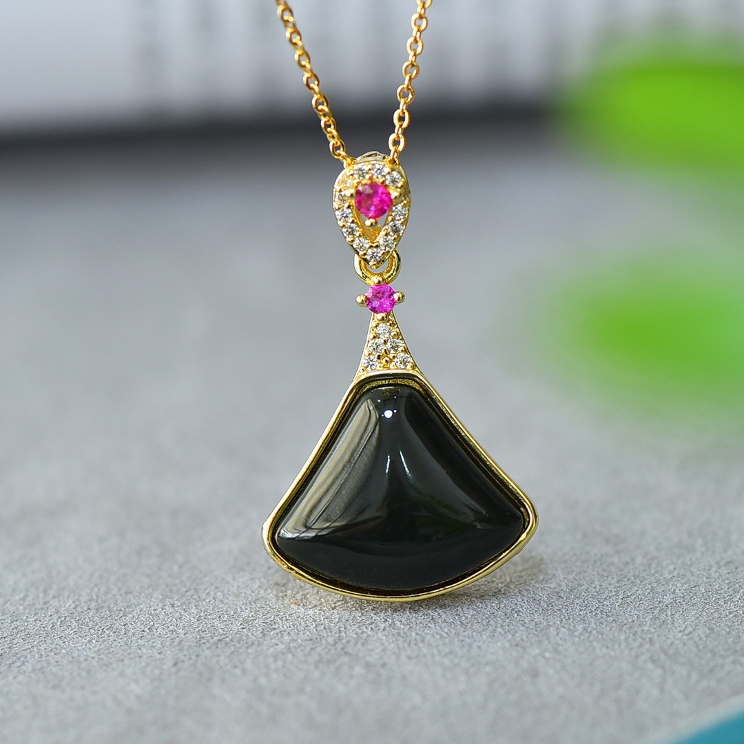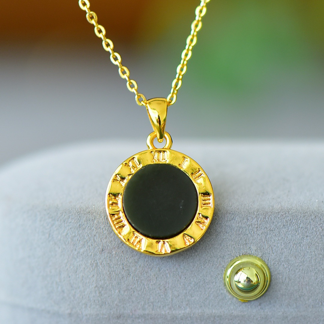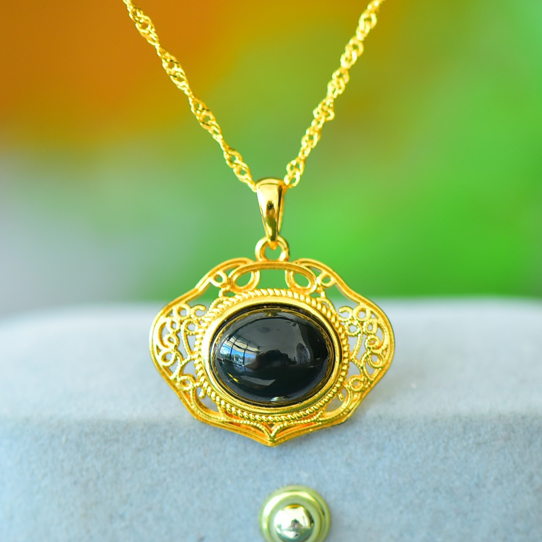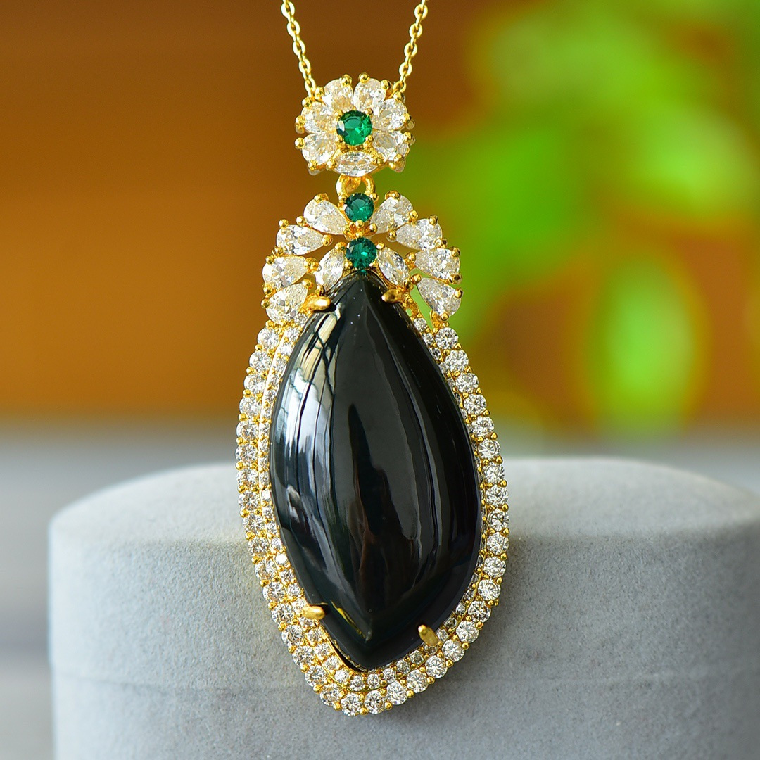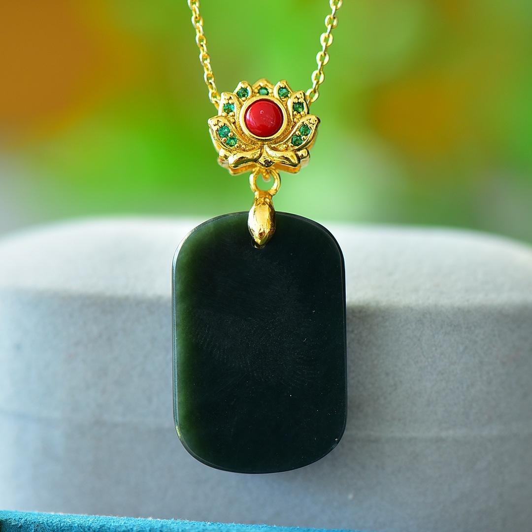 Copper Inlaid Natural Hetian Jade Gray Jade Flat Stylish Pendant Ink Blue Jade Jadeware Pendant Live Supply