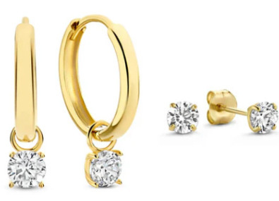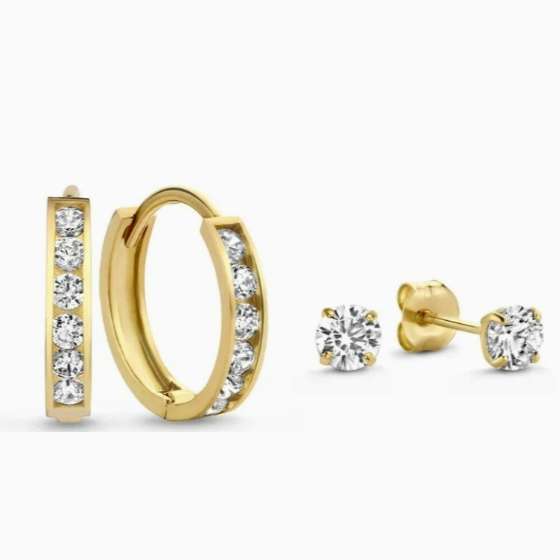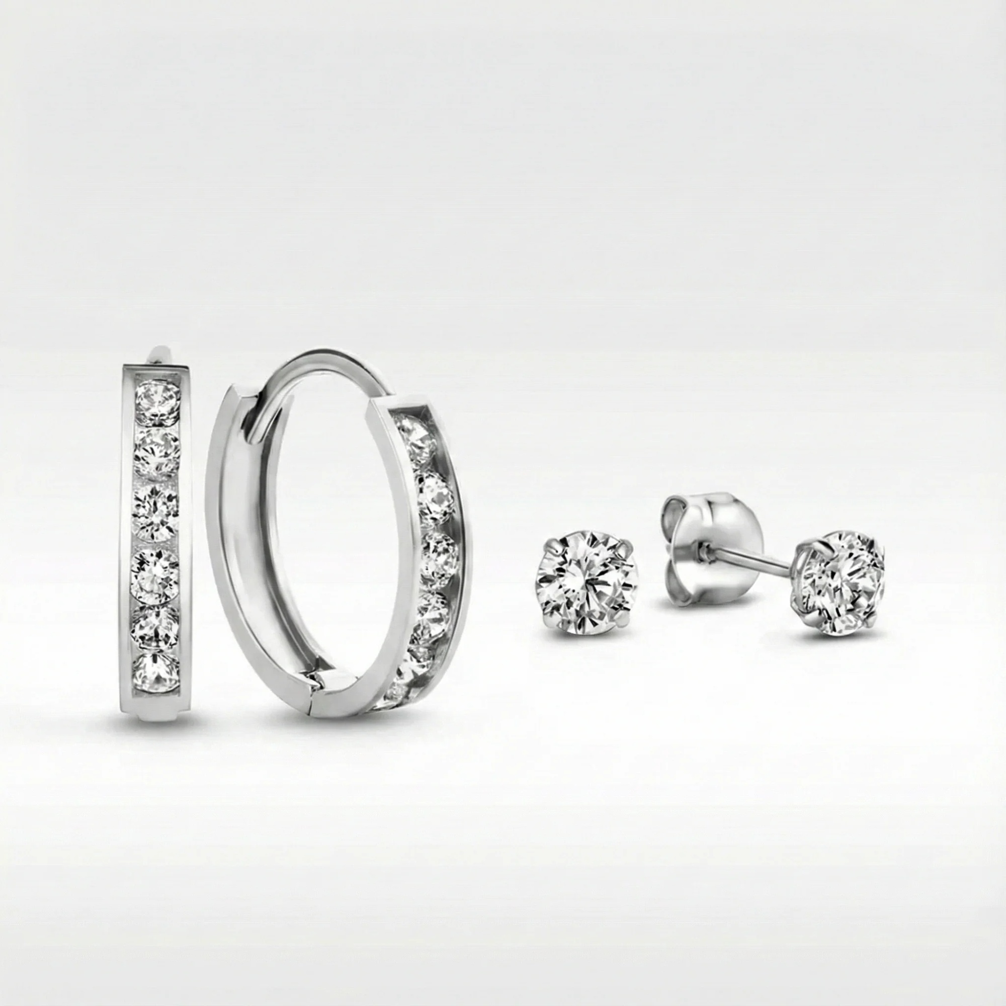 Colors: Silver circle + pair of stud earrings, gold earrings + pair of stud earrings, silver earrings + pair of stud earrings, rose gold earrings + pair of stud earrings