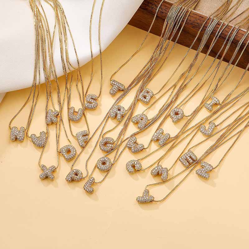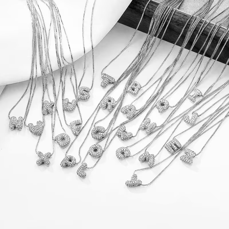Color: gold beaded letter necklace, White Gold color beaded letter necklace