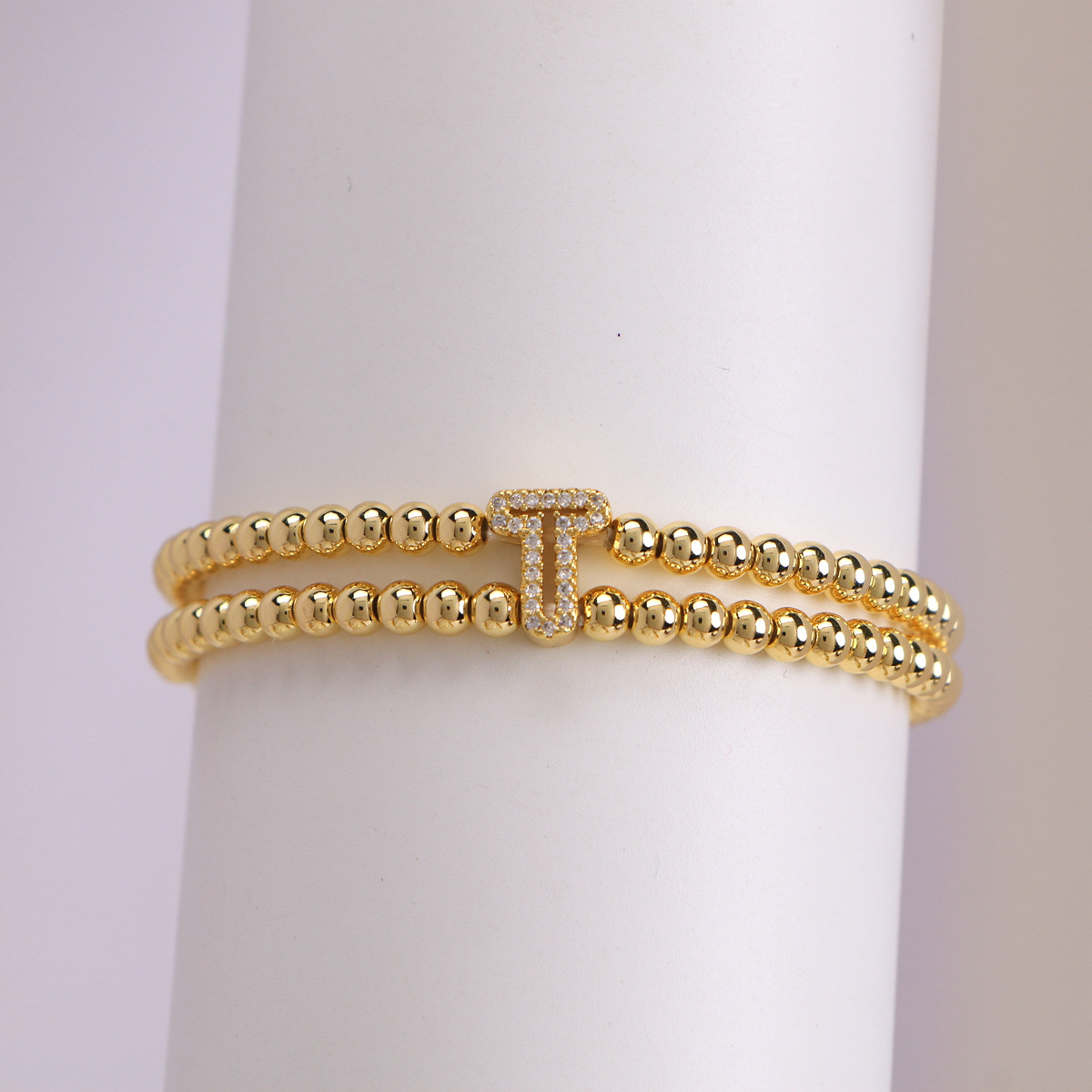 Copper-plated 18k Gold Zircon Bead Bracelet