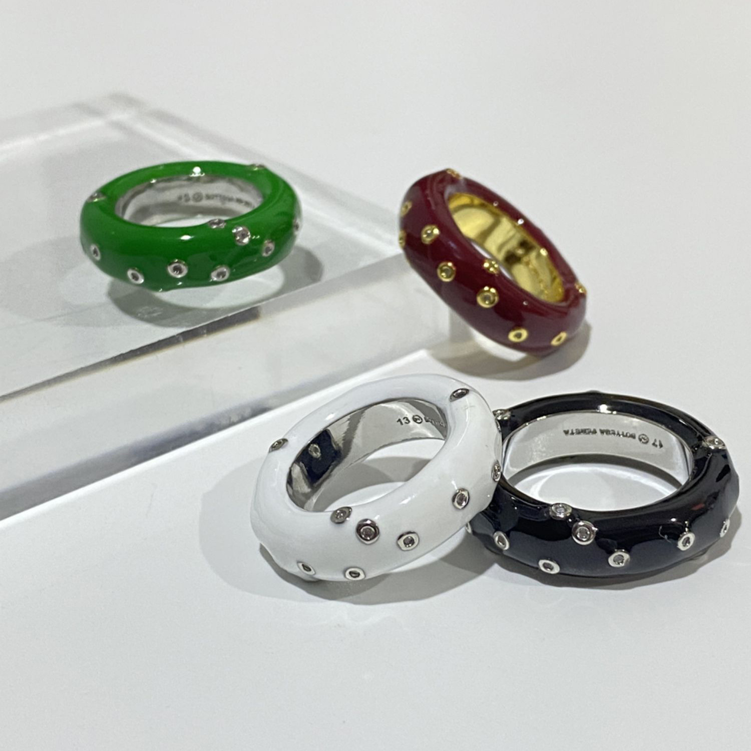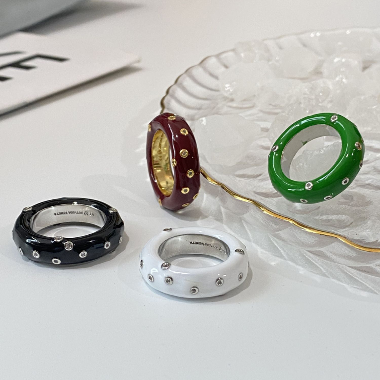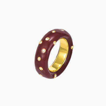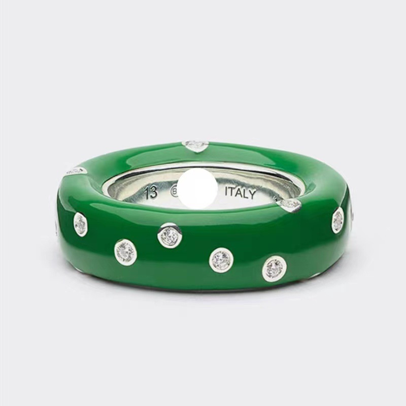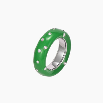 Copper-plated Gold Green Enamel Drip Glazed Inlaid Zirconium Ring