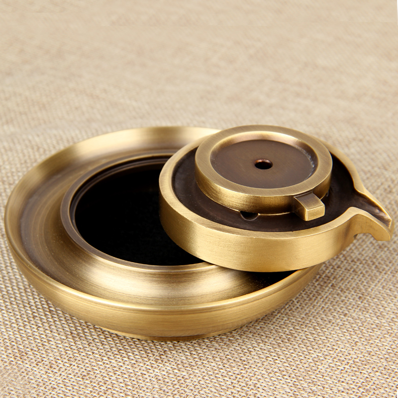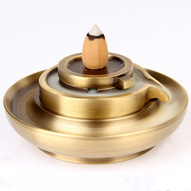 G: High-footed copper backflow incense burner ornament + a box of backflow incense: The bottom diameter is about 9cm, the height is about 10.5m, and the diameter is about 10.8cm