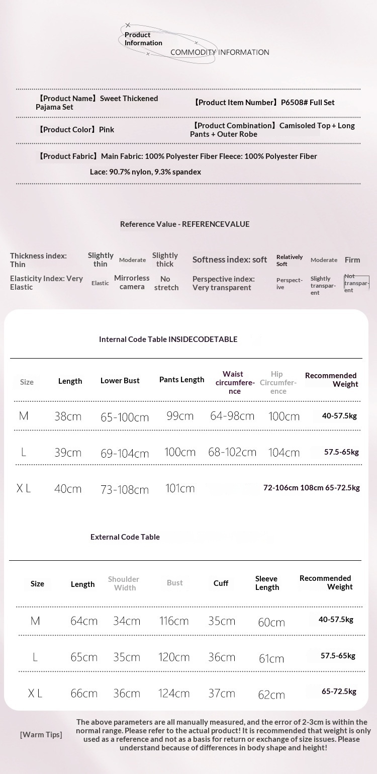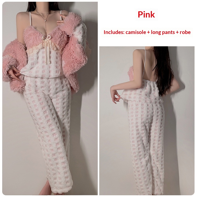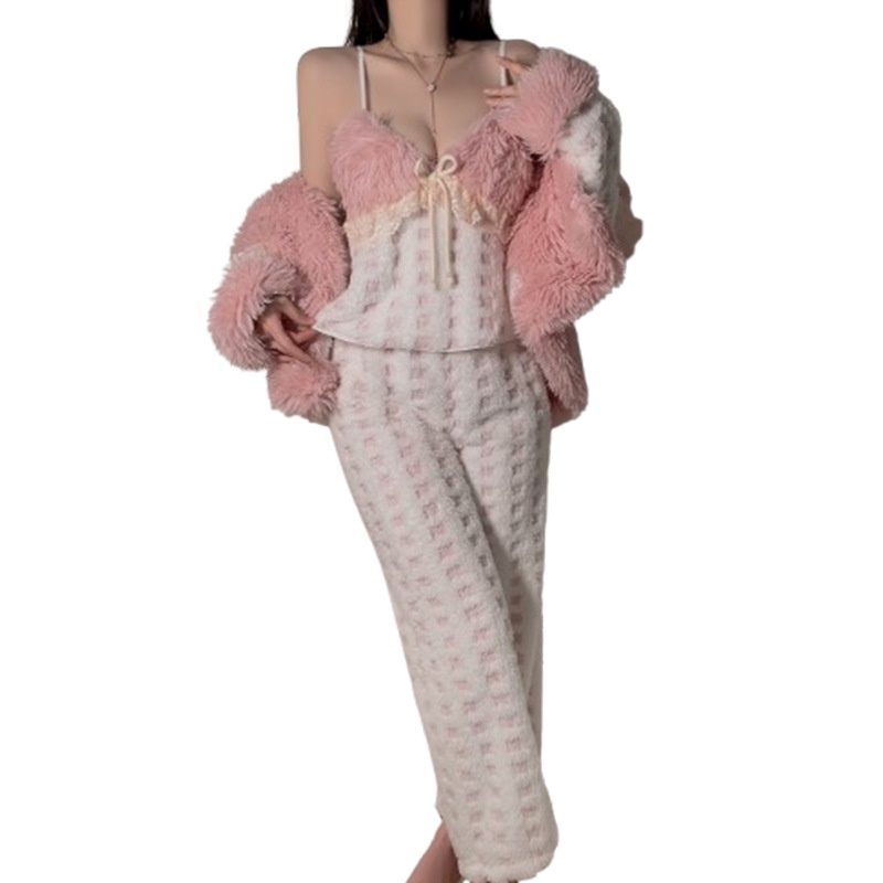 Color: Pink (strappy top + pants + robe)