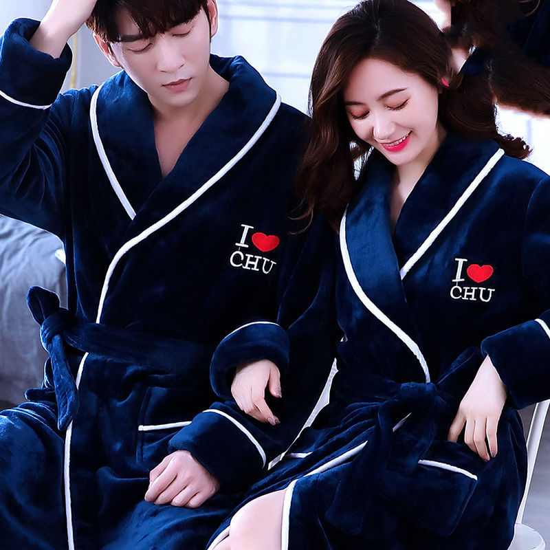 Colour :Cut flower couple nightgown-warm coffee color [thickening and lengthening]