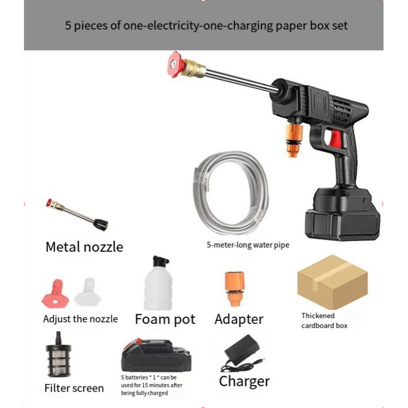 Cordless Electric High-Pressure Car Washer (UK Standard) With 2 Batteries And 1 Charger, 13L Bucket And Wash Towel