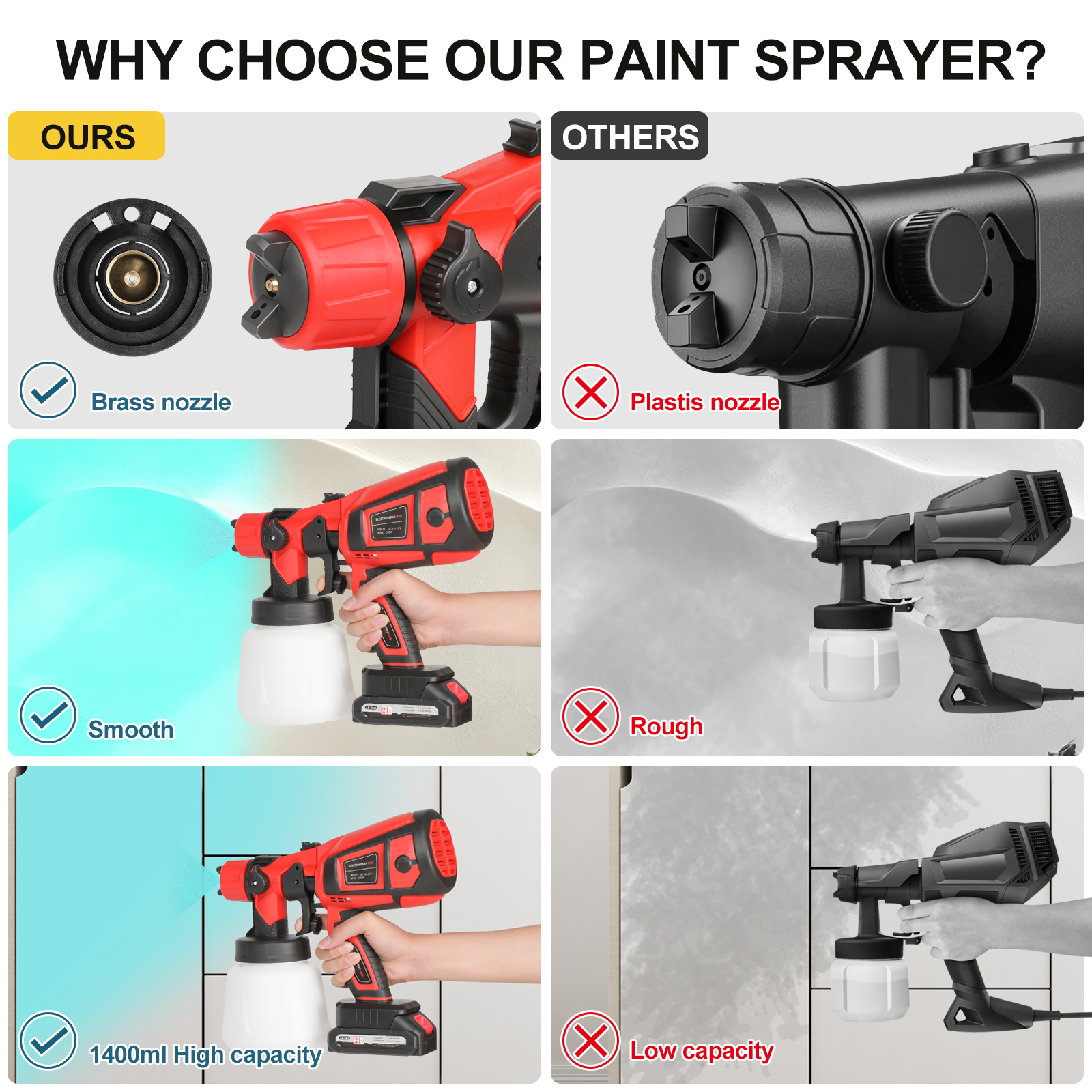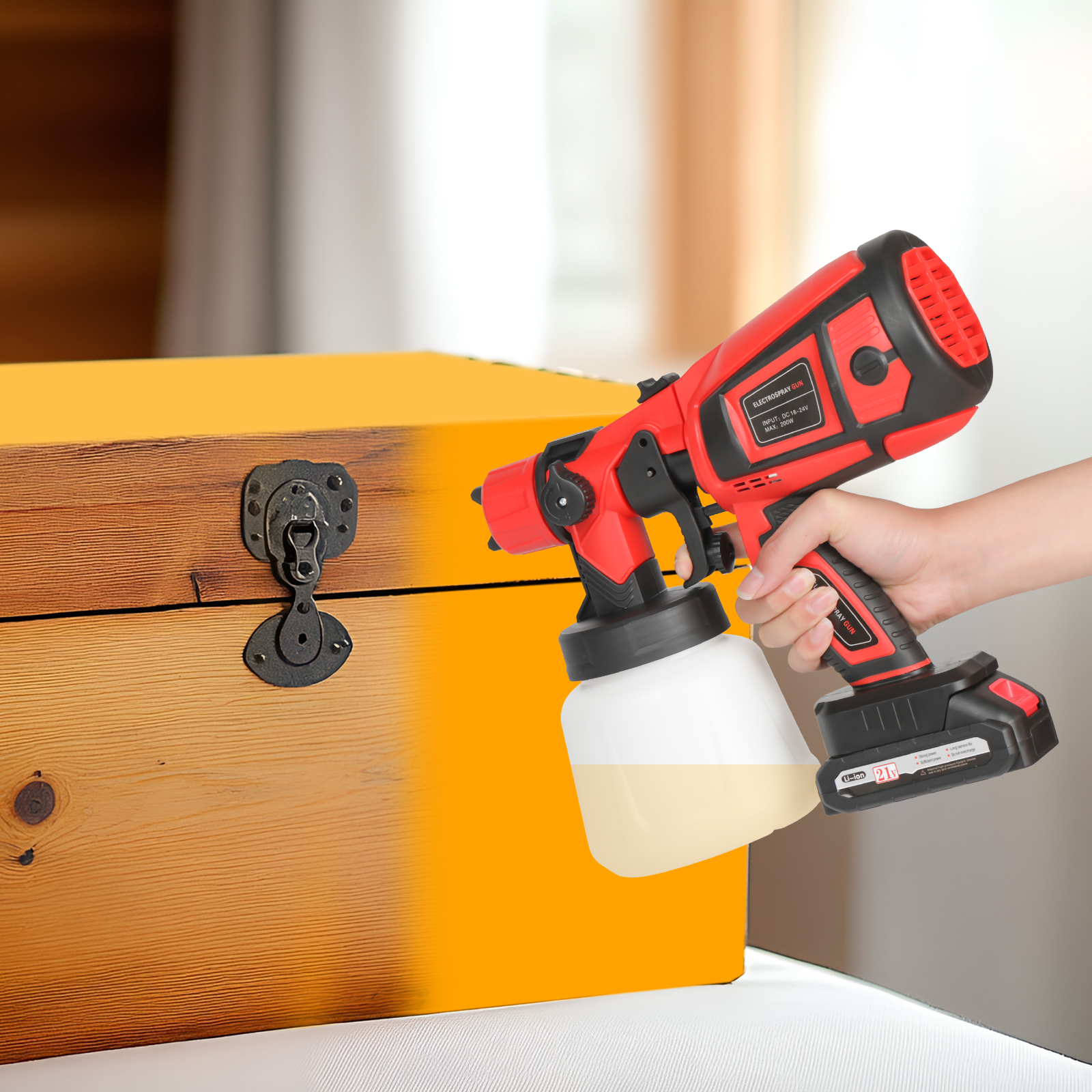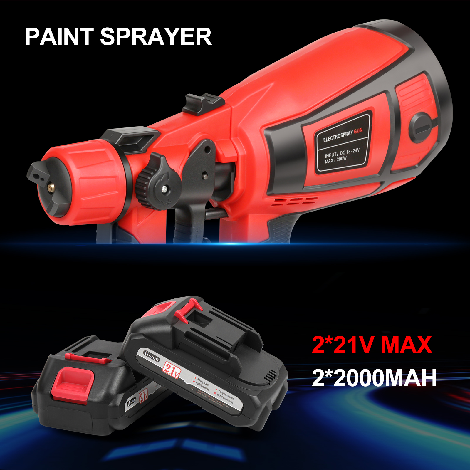 Upgrade your painting with our 18000RPM cordless paint sprayer! It has 2 batteries for non-stop use, 2 nozzles for different needs, a 900ml tank to reduce refills, and is easy to clean. Paint furniture, walls, or crafts effortlessly with speed and convenience.
