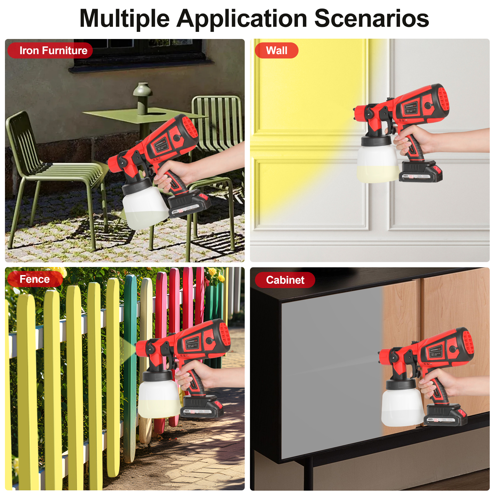 Our sprayer works wonders in various scenarios. It can refresh stairs, give sheds a colorful new look, revamp wardrobes, and transform shutters, making it a perfect choice for different painting needs.
