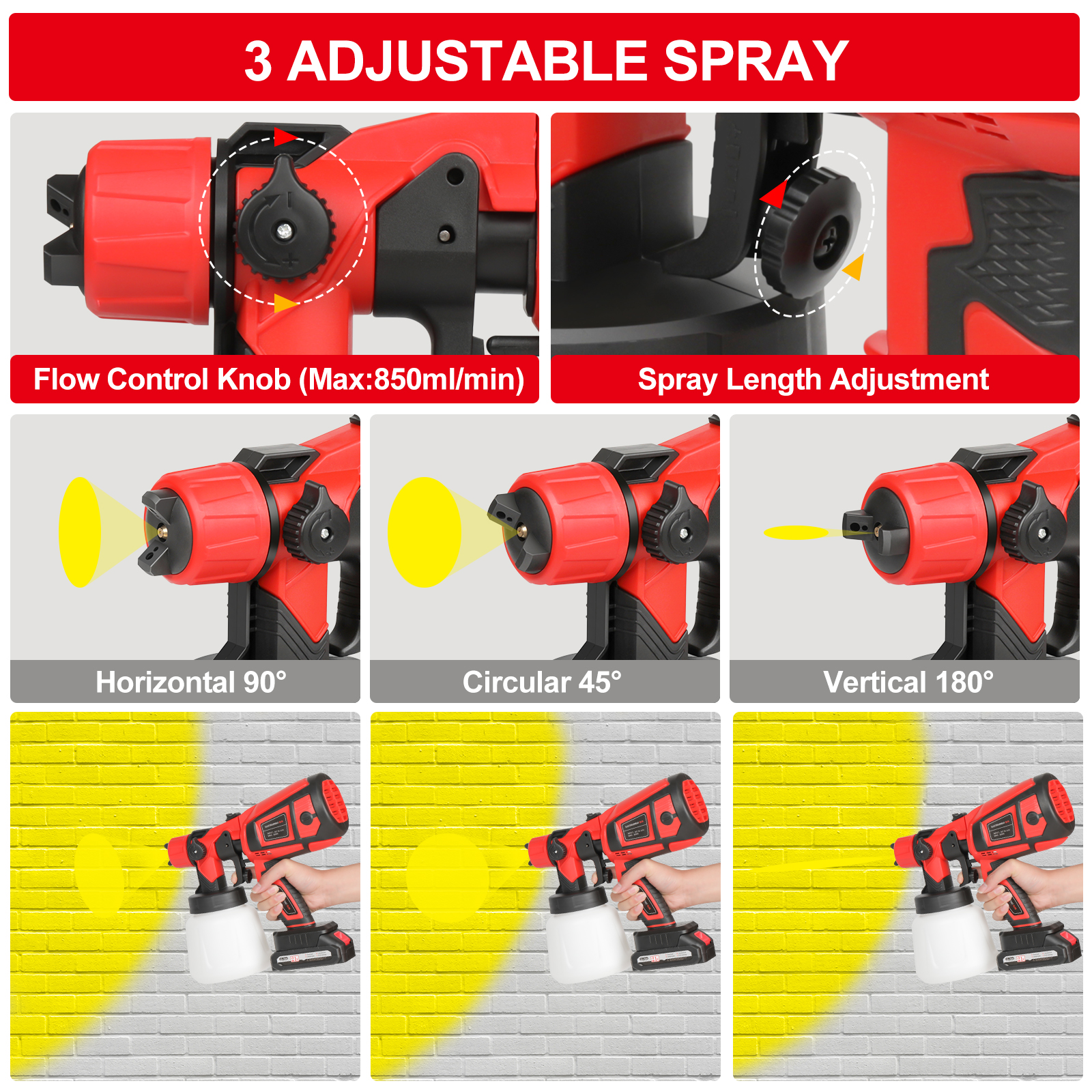 Adjustable flow control: With a wide range of 280-850ml/min stepless flow adjustment function, you can achieve precise control at your fingertips through the knob. Easily meet different spraying needs, effectively reduce paint waste, and achieve professional spraying effects