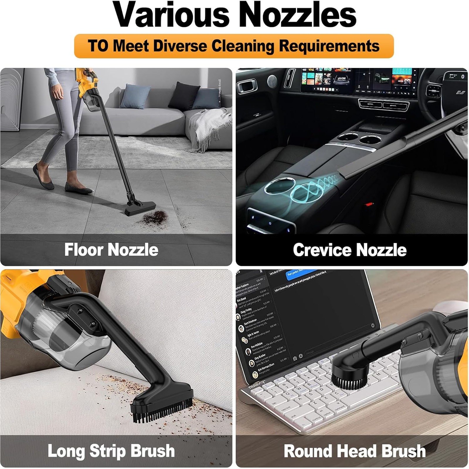 Multi-Scene Application: This vacuum cleaner is equipped with 2 extension tubes and 3 kinds of dynamic attachments - cater to every scenario, like carpets, car, furniture, floor etc. From tight corners to delicate surfaces and expansive floors, conquer cleaning challenges effortlessly. Simplify your routine and experience cleaning at its finest