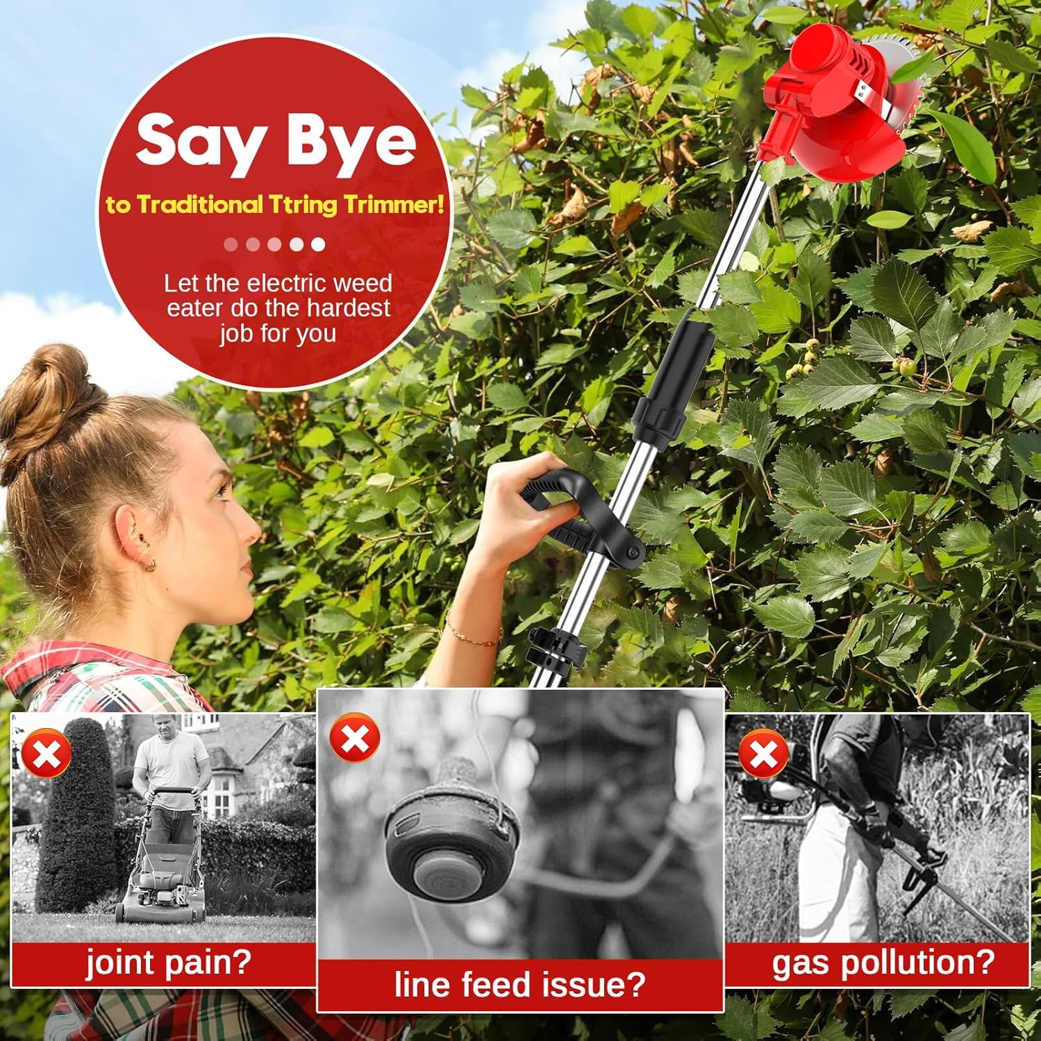 Cordless Lithium-Ion Lawn Trimmer - Adjustable Handle Electric Grass Cutter with Stainless Steel Shaft