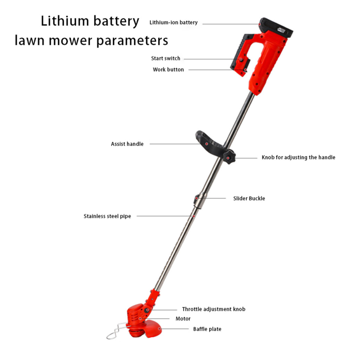 Cordless Lithium-Ion Lawn Trimmer - Adjustable Handle Electric Grass Cutter With Stainless Steel Shaft