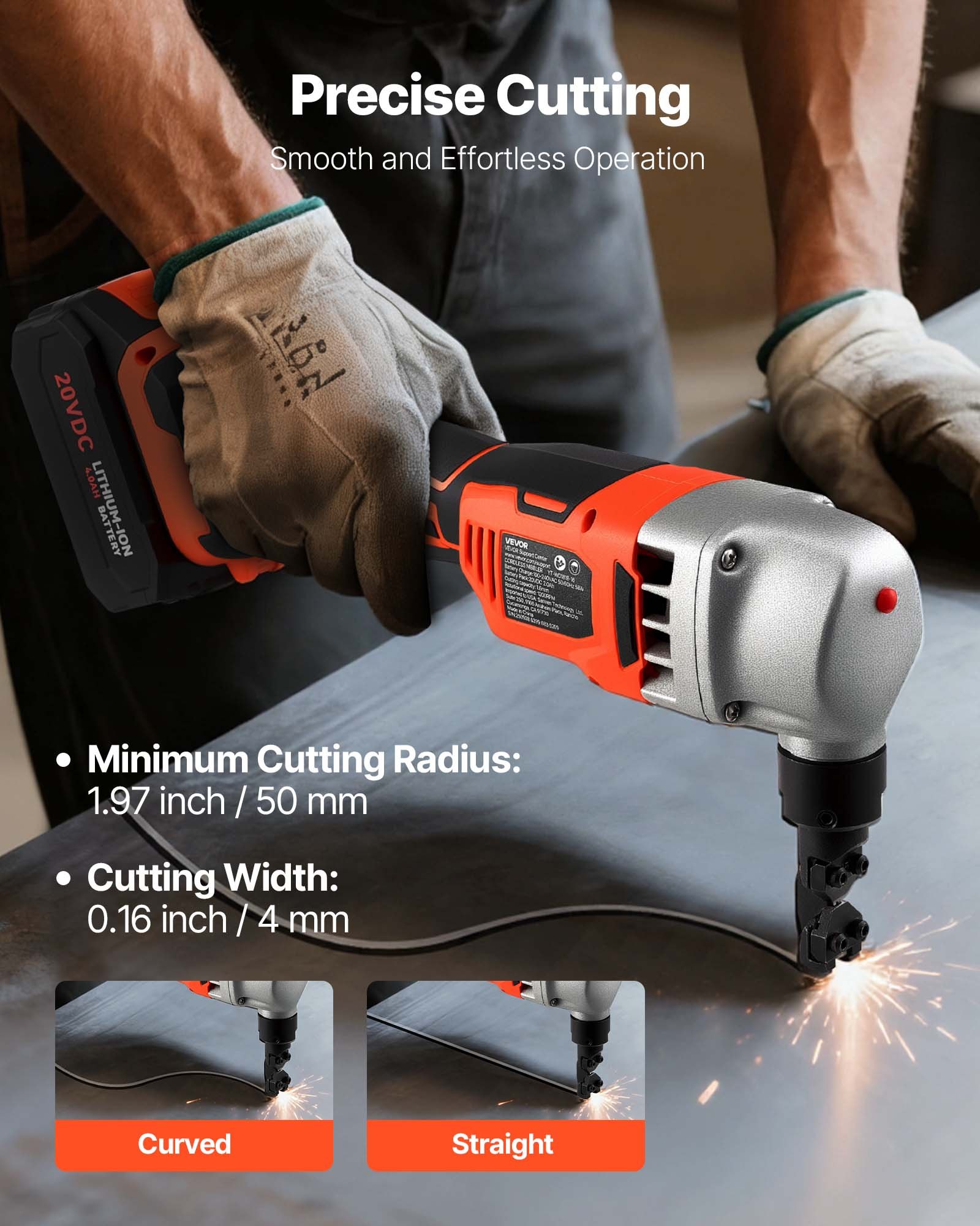 Powerful Performance: This cordless metal nibbler features a brushless motor with a speed of 1,200 RPM, providing strong power for efficient and fast cutting. It is ideal for cutting tough materials like stainless steel, aluminum and copper