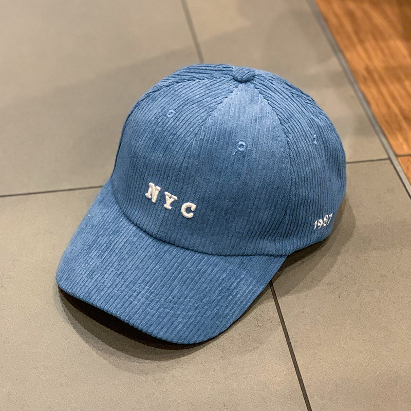 gray/NYC corduroy baseball cap, blue/NYC corduroy baseball cap, peacock blue/NYC corduroy Baseball cap,