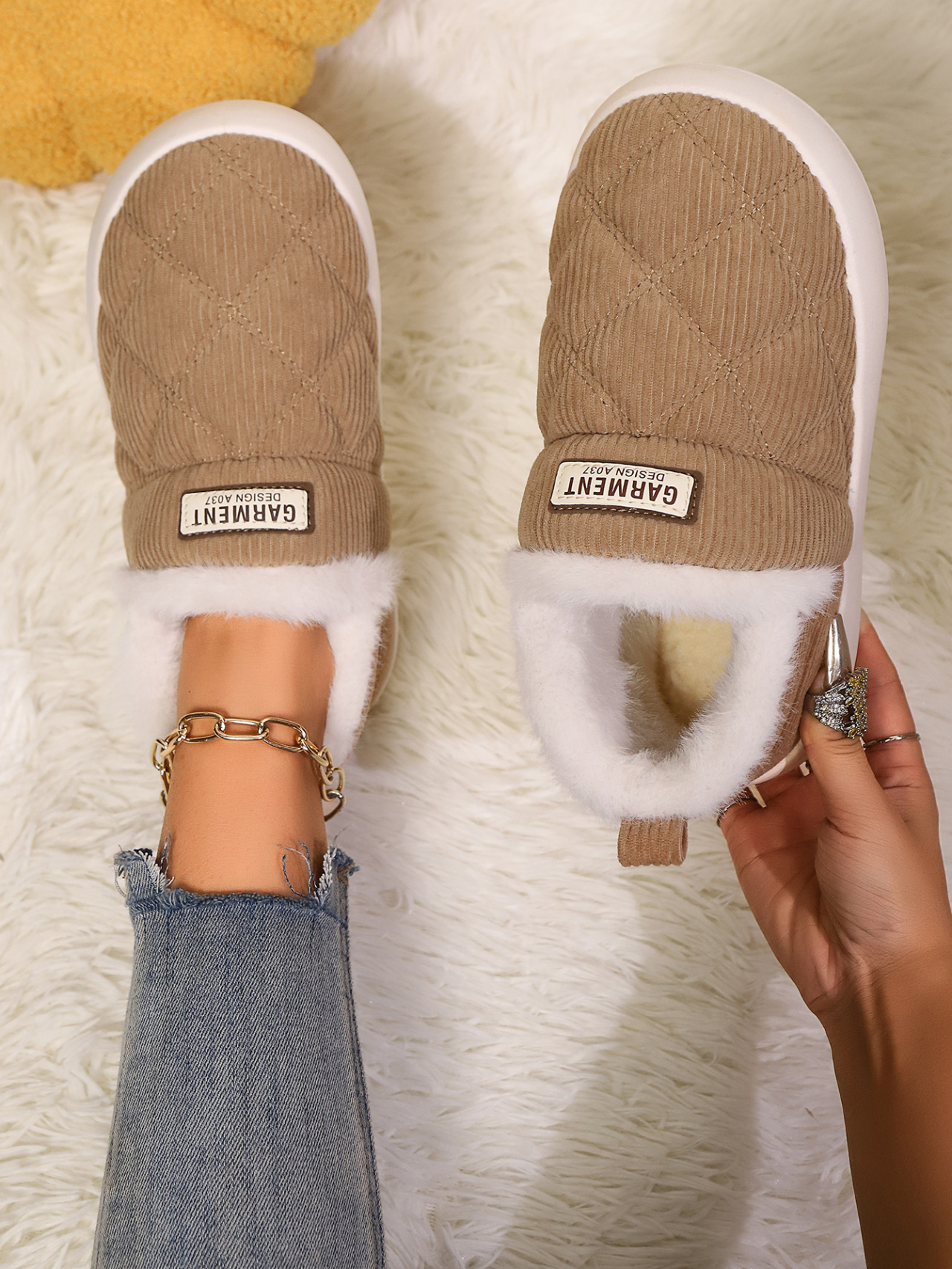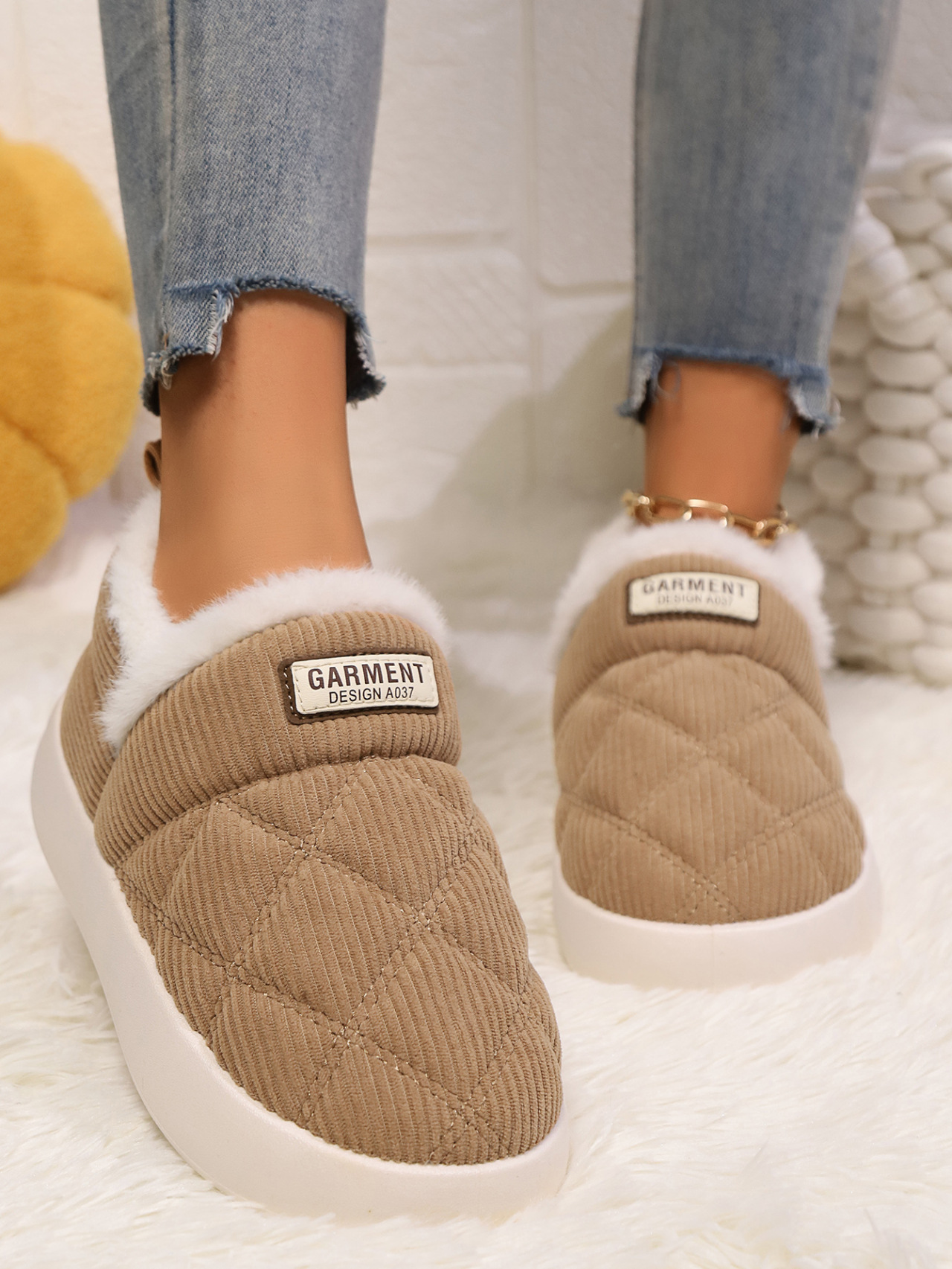 Corduroy Home Cotton Slippers Warm Non-slip Thick Bottom