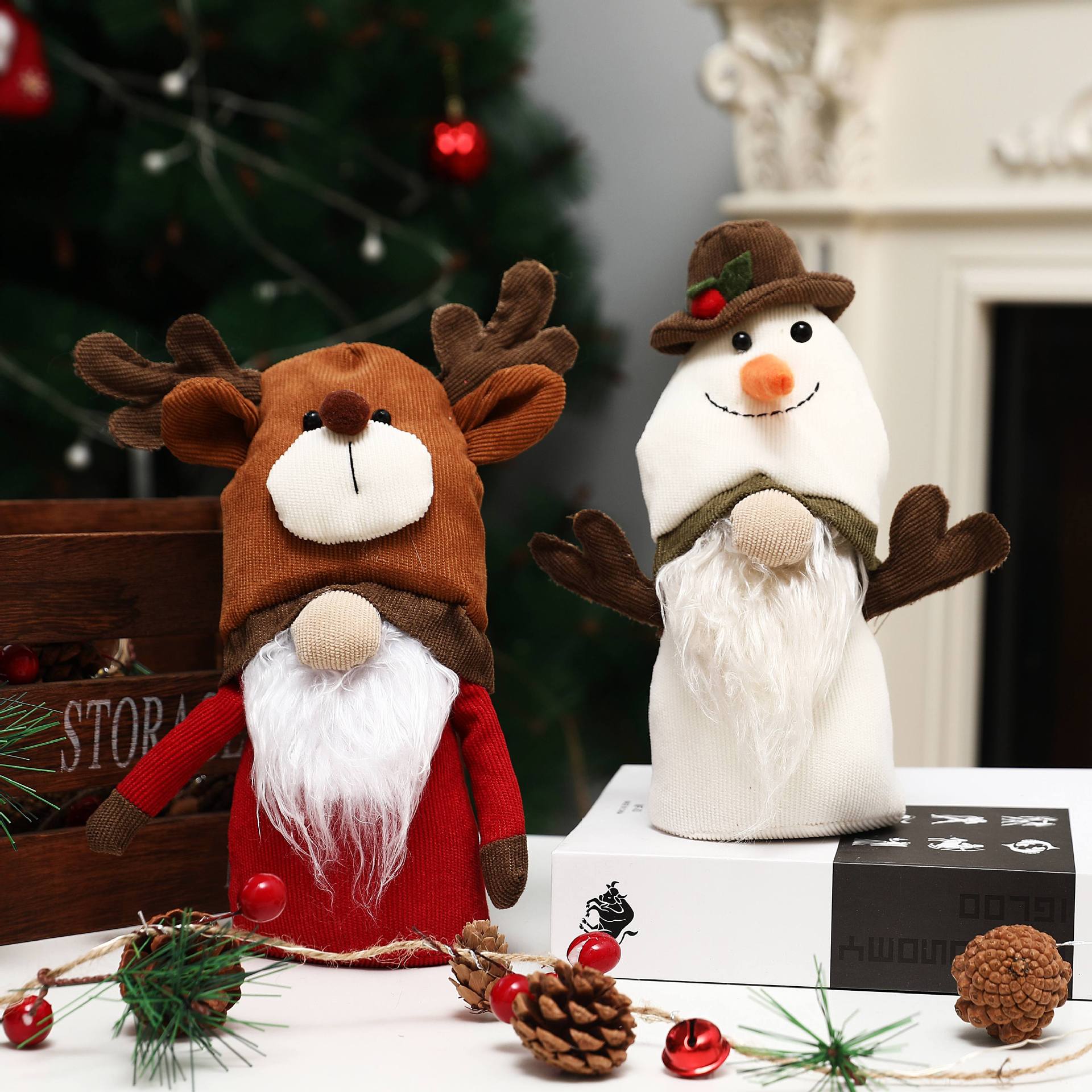 Corduroy Knitted Christmas Gnome Desktop Ornaments Plush Cute Snowman Elf Soft Doll Home Desk Craftwork Bedroom Decor