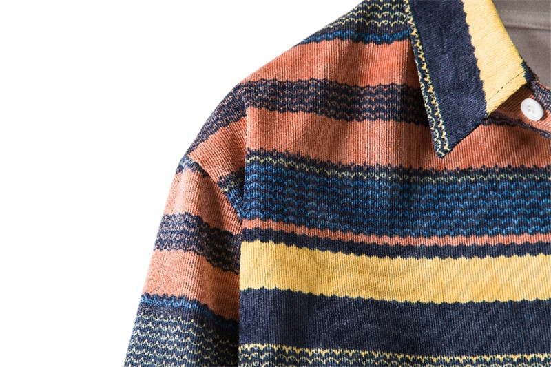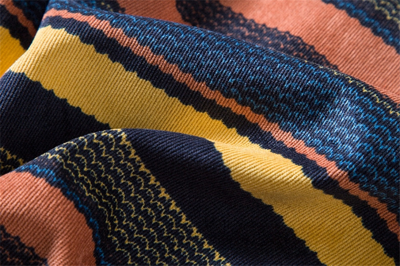 Corduroy Shirt Ethnic Print Lapel Men's Long-sleeved Shirt