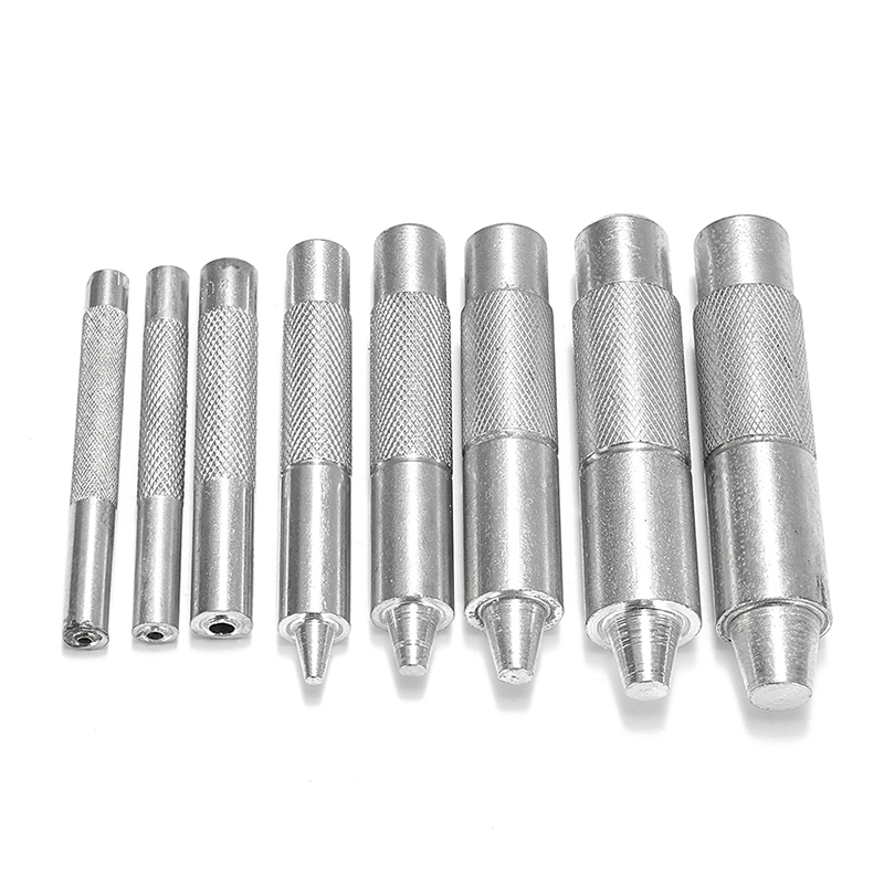 Please select the tool according to the button models required, usually install a set of buttons, you must punch the first perforated leather or fabric, then install the buttons, hit the stick with your hand!