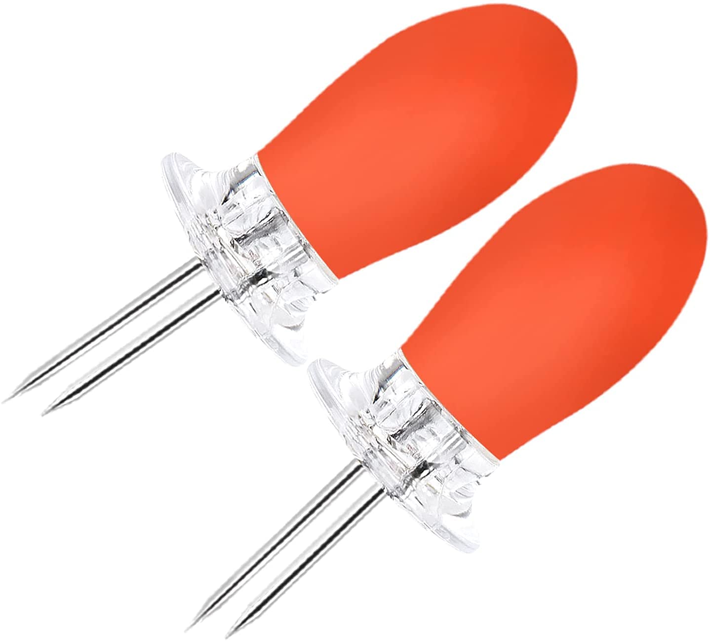 Premium Corn Holders : Our corn holders with ergonomic oak silicone handle,which are more comfortable to hold. Pins are made of stainless steel, which are rust-proof and easy to clean.You can also use corn cob holders to eat other foods