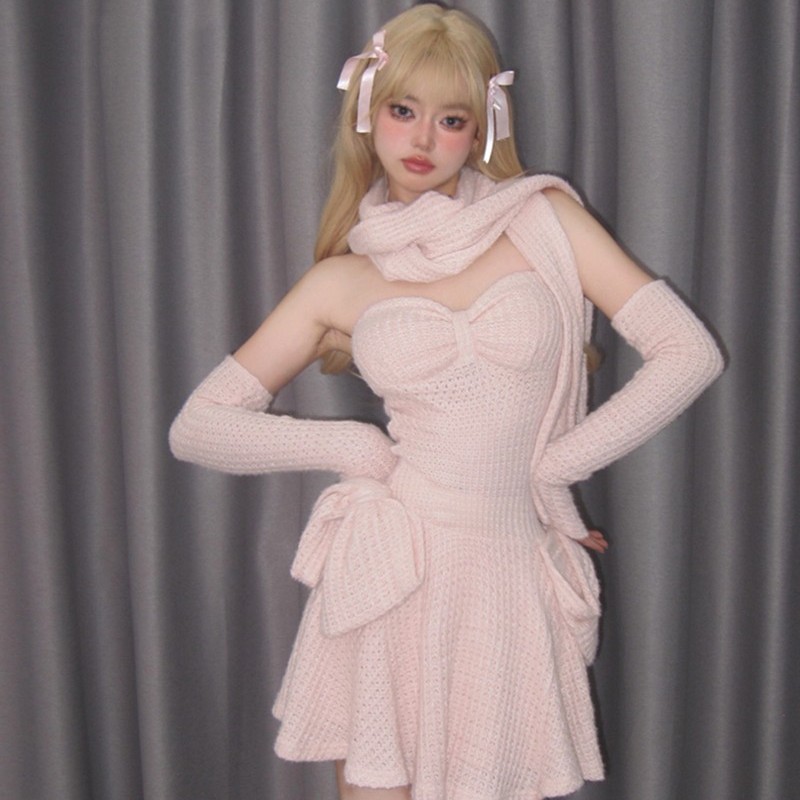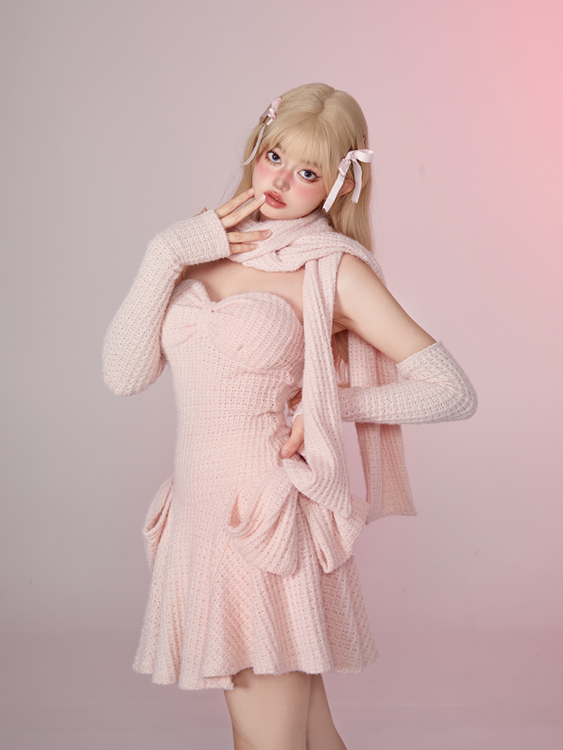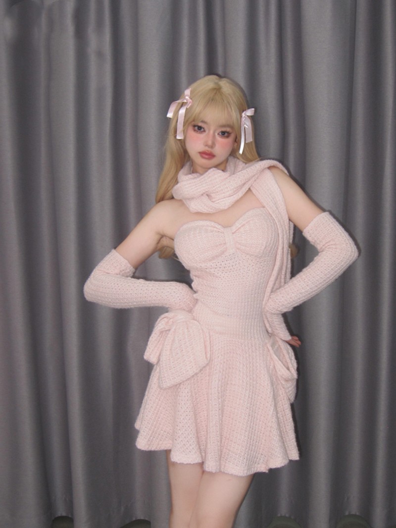 Color classification: Cream powder breast skirt (including sleeves)+scarf