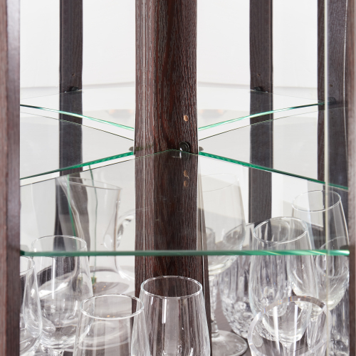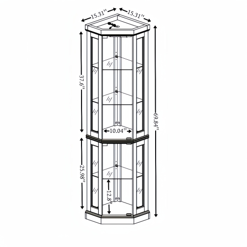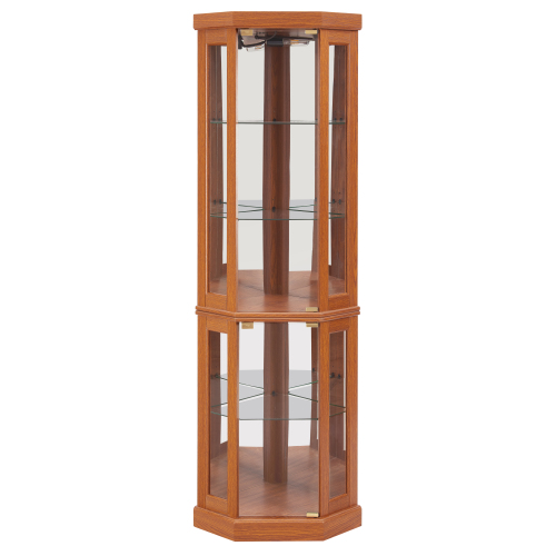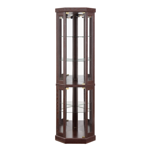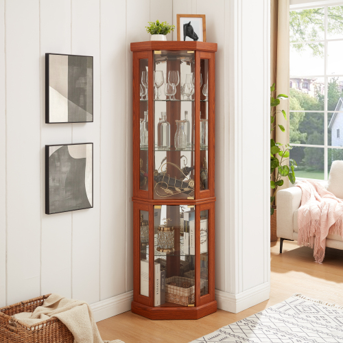 Product Name:Corner Glass Cabinet Lighted Curio Cabinet Corner Display Case for Living Room, Curio Cabinet, Antique collection, Wine,Bar Glass Storage Light Included, Dark oak
