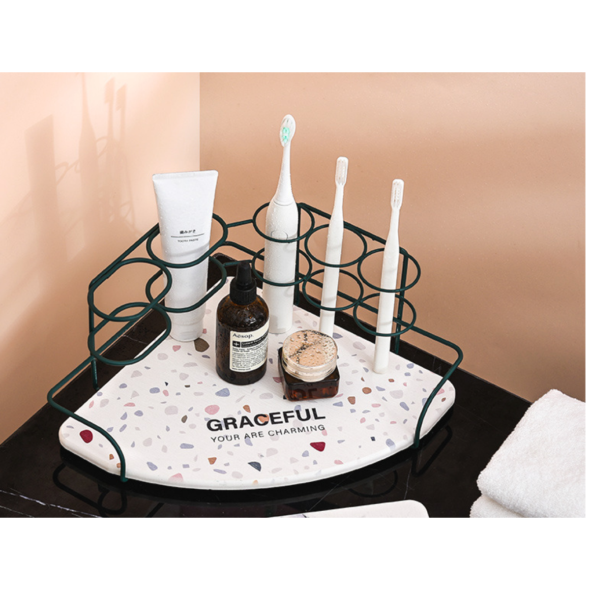 Corner wrought iron diatom mud toothbrush holder