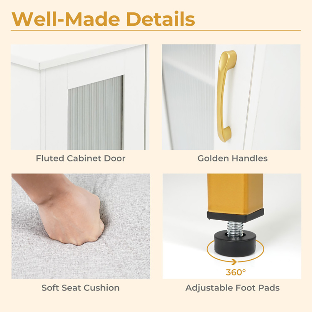 • Ample & Flexible Storage: 2 extra shelves, 2 open shelves, enclosed cabinet, and spacious desktop keep your space clutter-free. 2 fabric bags help you easily reach for your makeup tools. Plus, there is a 5-level adjustable shelf behind the door to suit items of different heights.