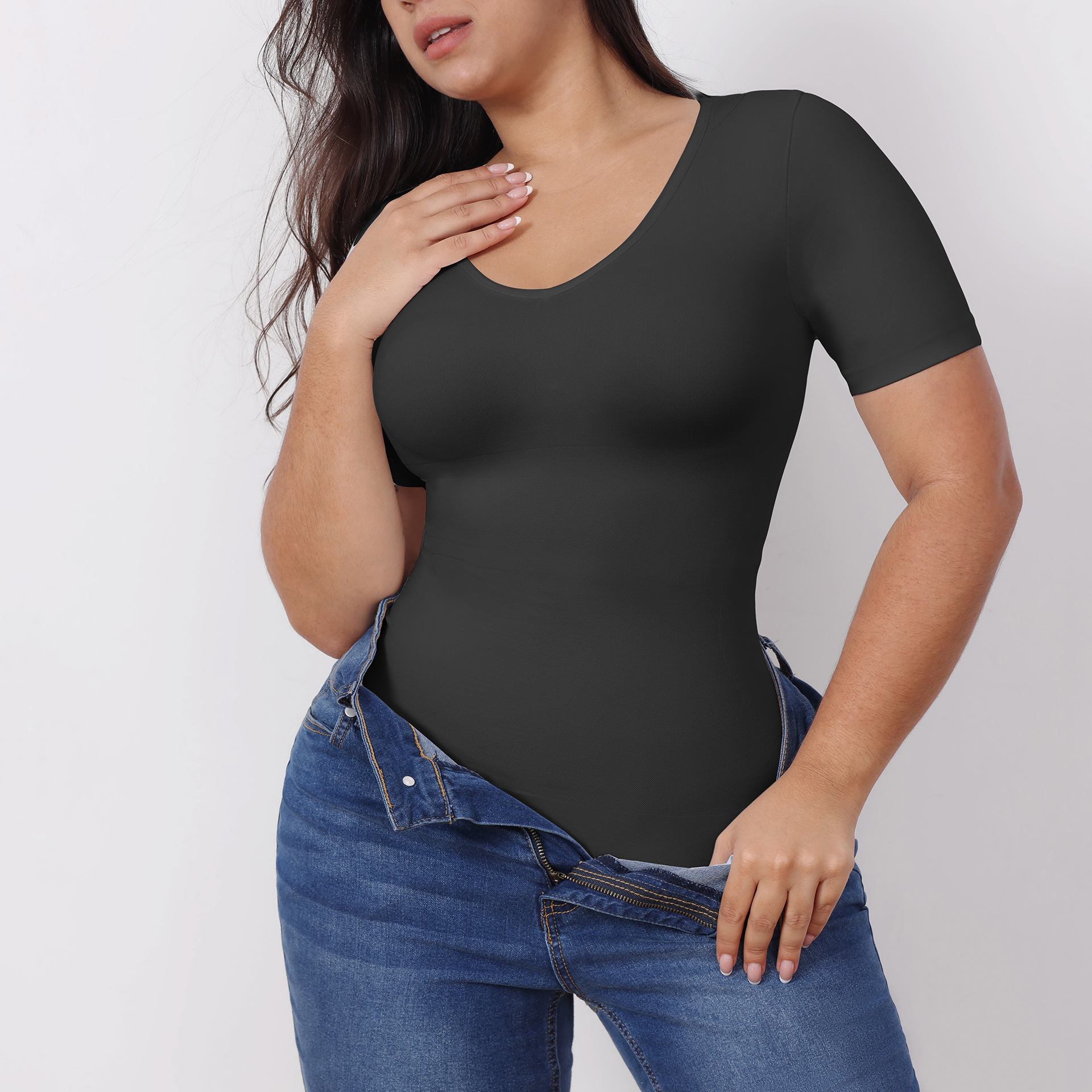 Corset Top Tight Belly Trimming Short Sleeve Women's Outer Wear V-neck Corset Waist