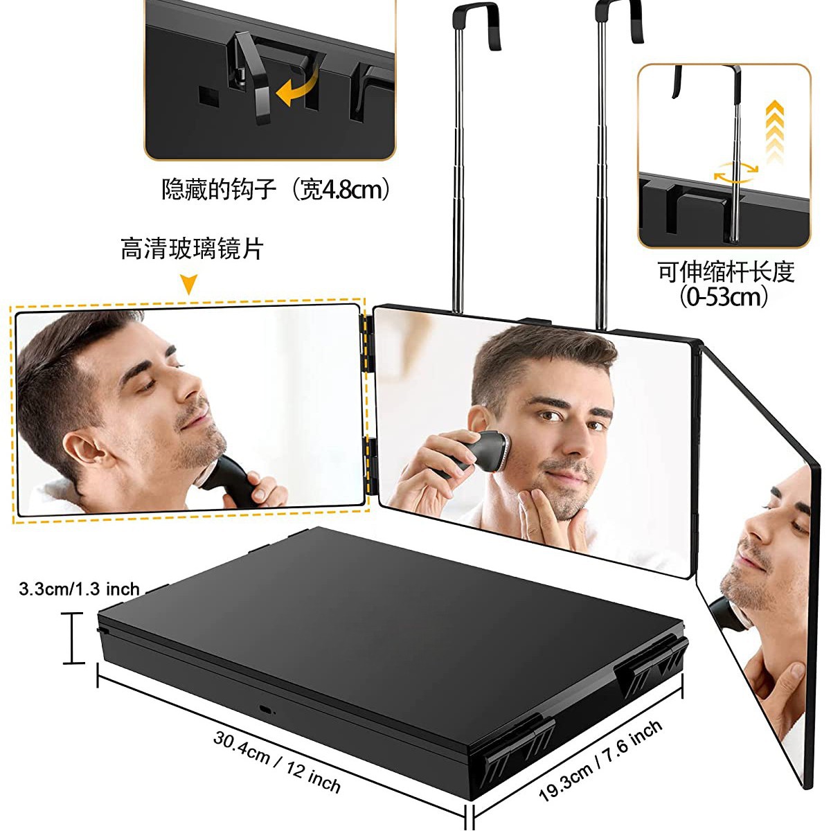Specification: haircut 3-way mirror