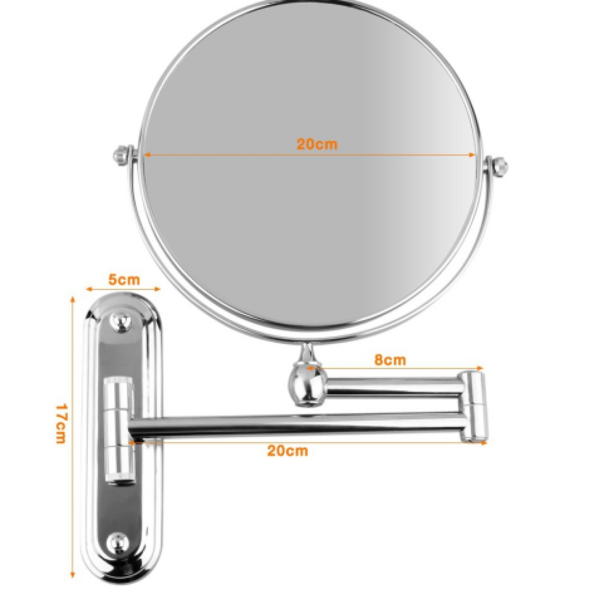 Mirror surface is 8 inches. The arm is up to 12 inches, can be extended according to your need. All metal construction with polished chrome surface. Easy to install,comes complete with screw fixings. Mirror diameter: 8 inches (20cm) The arm can be extended up to 12 inches (30cm). Material:Brass and high polished Chrome Color:silver Weight: 0.9kg package 1x wall mounted mirror 1x pack of fixing screws Double-sided mirror with normal and 3 x magnifying. 360-degree swivel design and can be fixed at any angle you like. Excellent quality with brass material, rustless,anticorrosive and durable. Ideal for applying make-up,wearing contacts and shaving,etc. Elegant design,would be suitable for any family and hote bathroom,etc.
