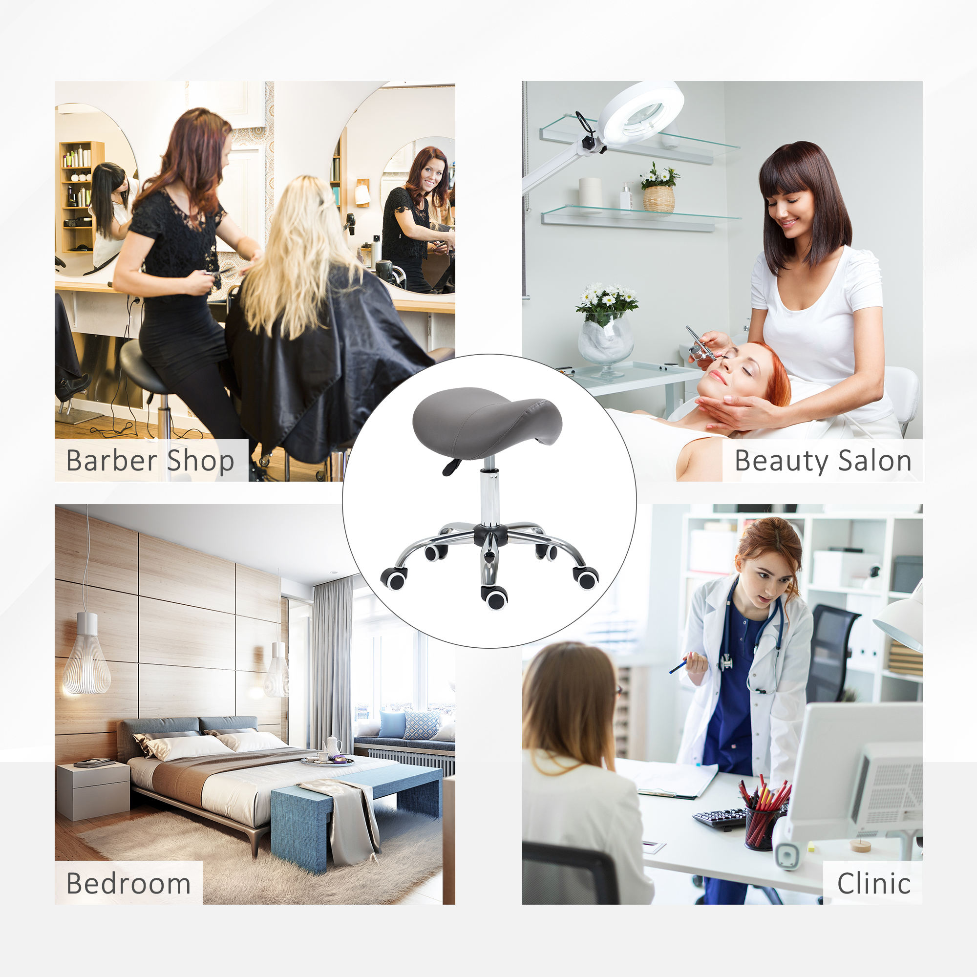 Ensure you have the correct posture when work in your saloon/tattoo parlour, or even at home, with this hairdressing chair from . A heavy metal base for balance and stability, the height is adjustable between 49cm and 61cm: set this stool to a level best for you. The moulded seat is padded, for comfort and posture support. Five wheels to move around easily whilst seated.