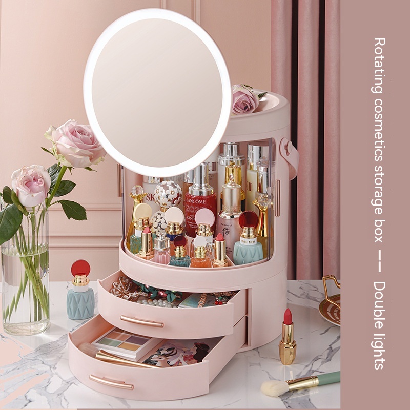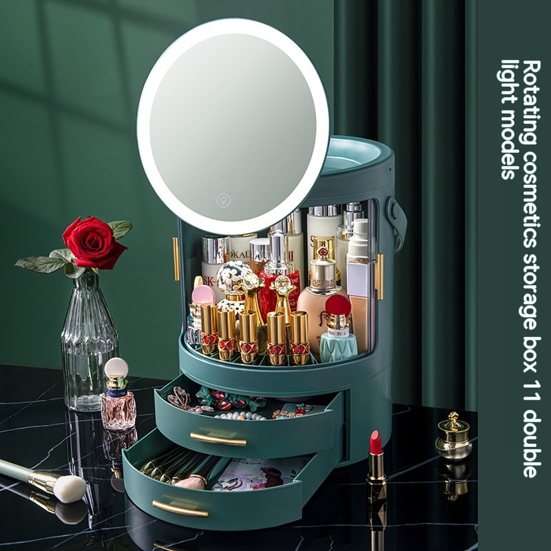 Color: Goddess mirror peacock green rotatable (no light), goddess mirror peacock green rotatable (single light), goddess mirror peacock green rotatable (double light), goddess mirror ivory white rotatable (no light), goddess mirror ivory white rotatable (single lamp), goddess mirror ivory white rotatable (double lamp), goddess mirror girl pink rotatable (no lamp), goddess mirror girl pink rotatable (single lamp), goddess mirror girl pink rotatable (double lights)