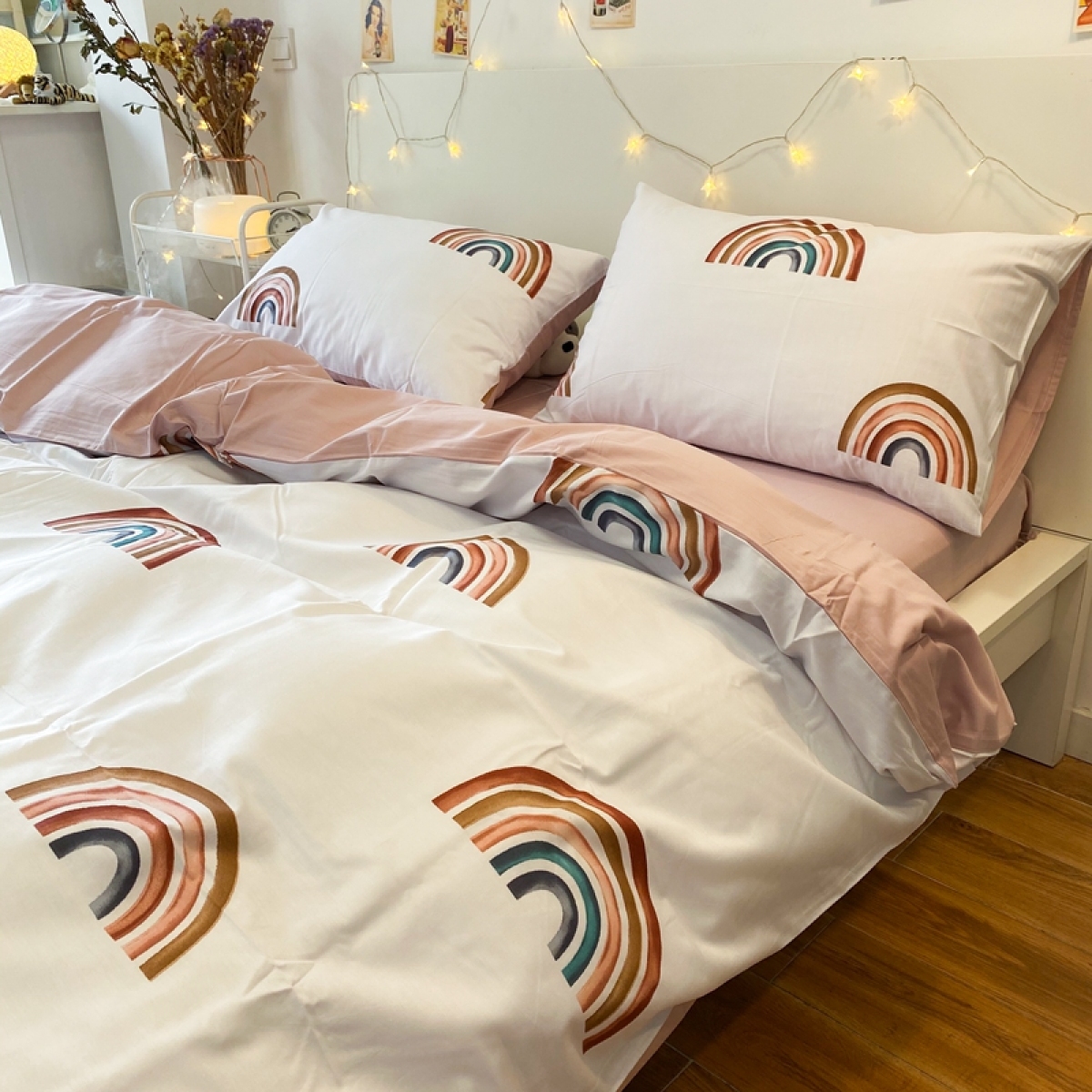 Cotton 4-piece White Bedding Girls Twill Quilt Cover Summer