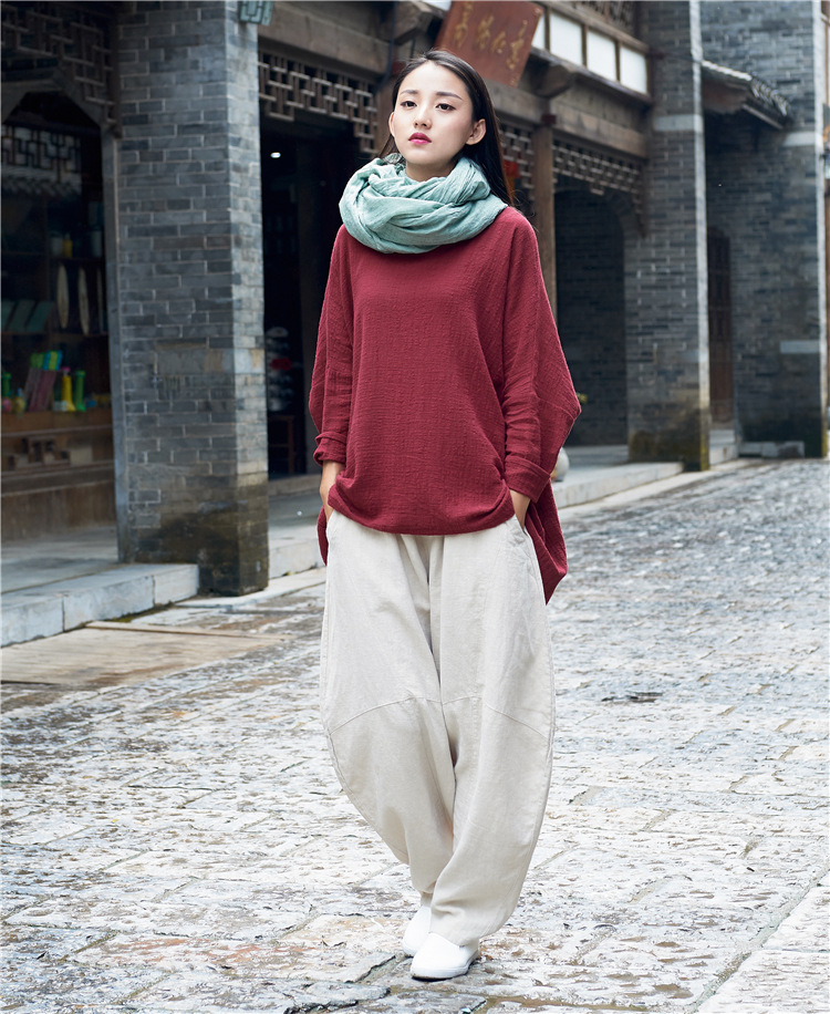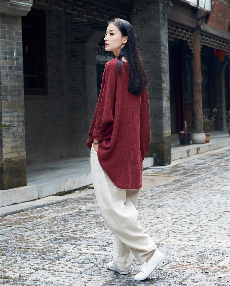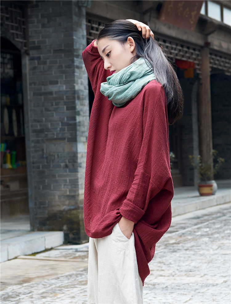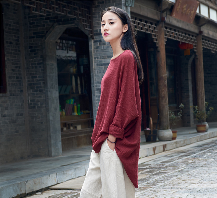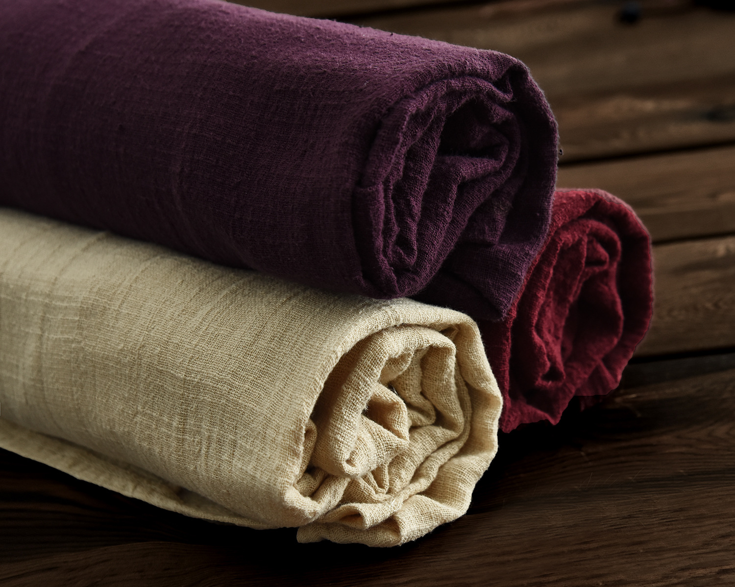 Color: wine red, dark purple, raw linen