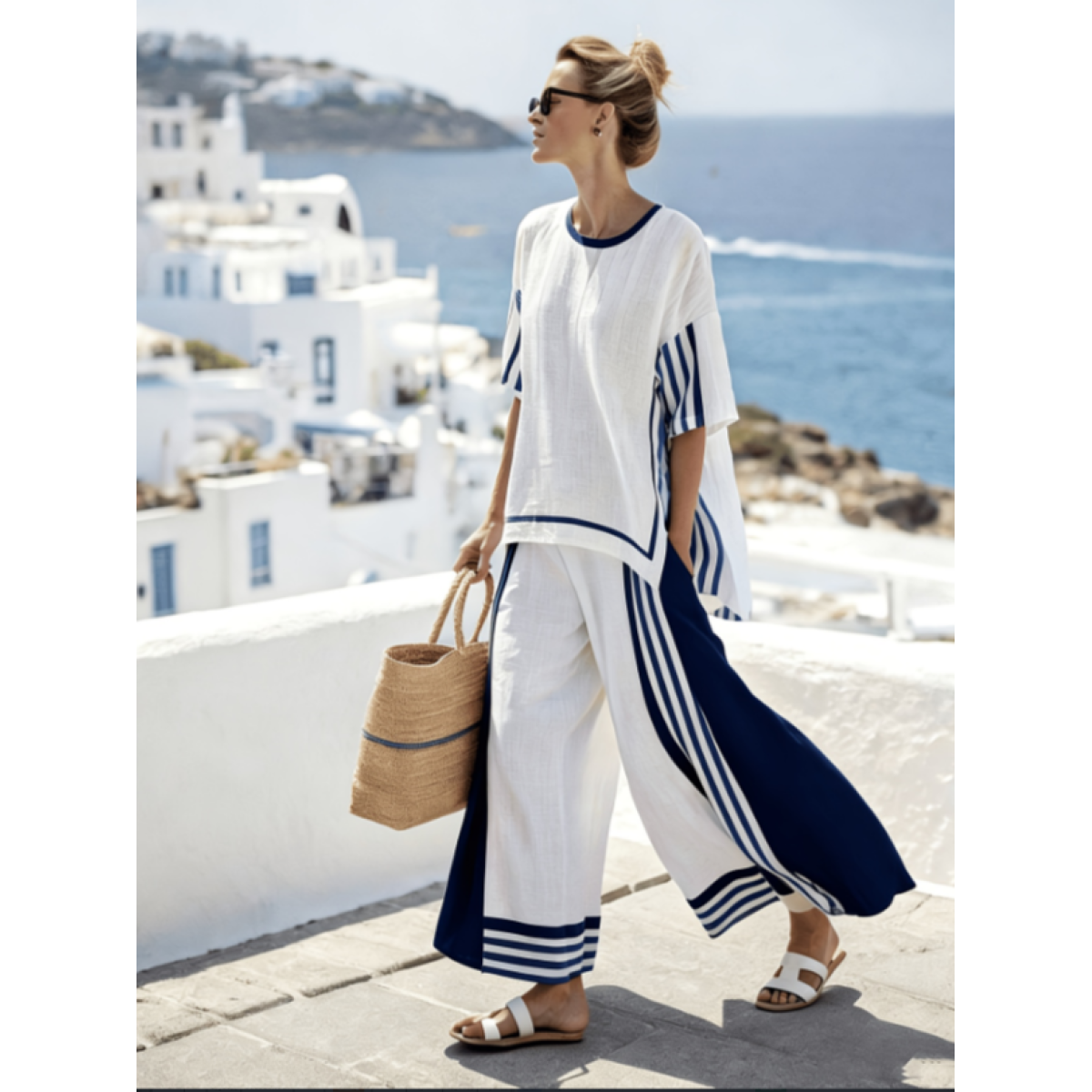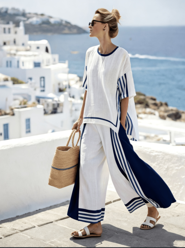 Cotton and linen contrasting striped vacation set