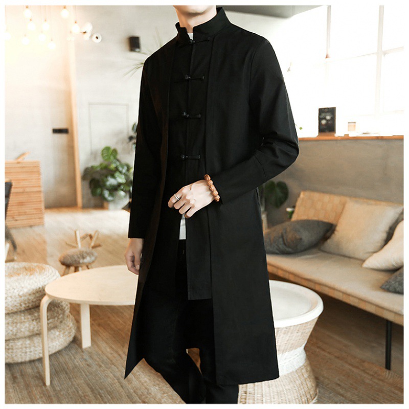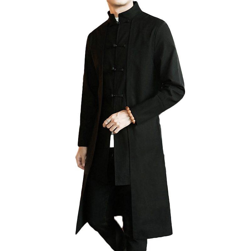 Cotton And Linen Mid-length Trench Coat Men's Slim-fit Large Size Coat