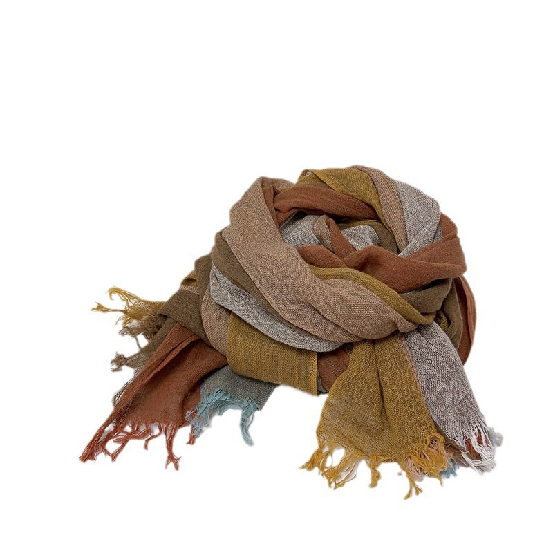 Cotton And Linen Stripes Scarf Soft Neck Scarf Ladies Outing Shawl
