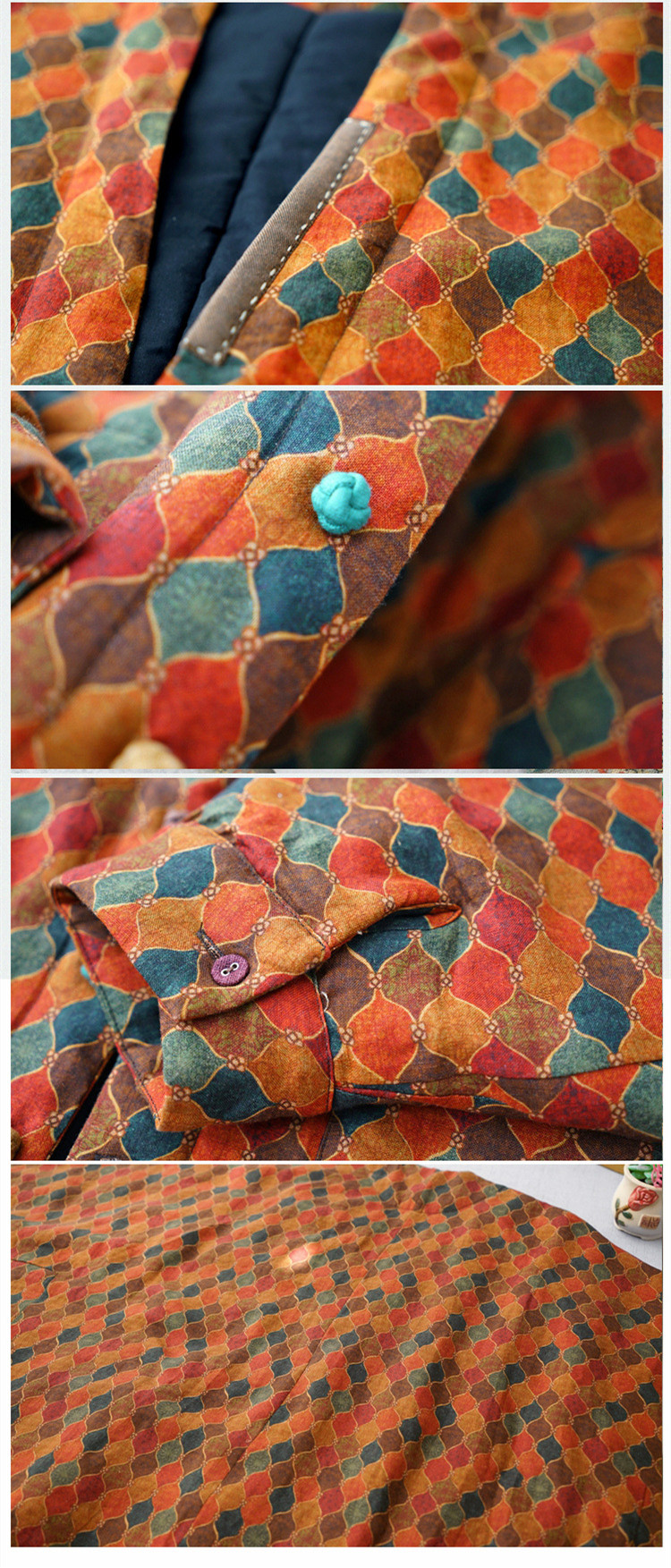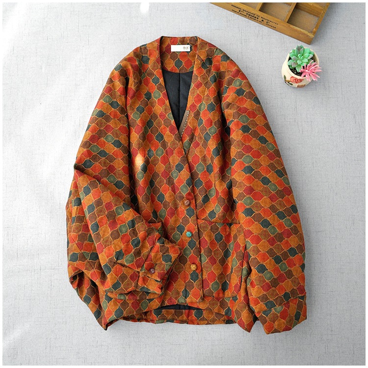 Features: V-neck, loose, single row with multiple buttons