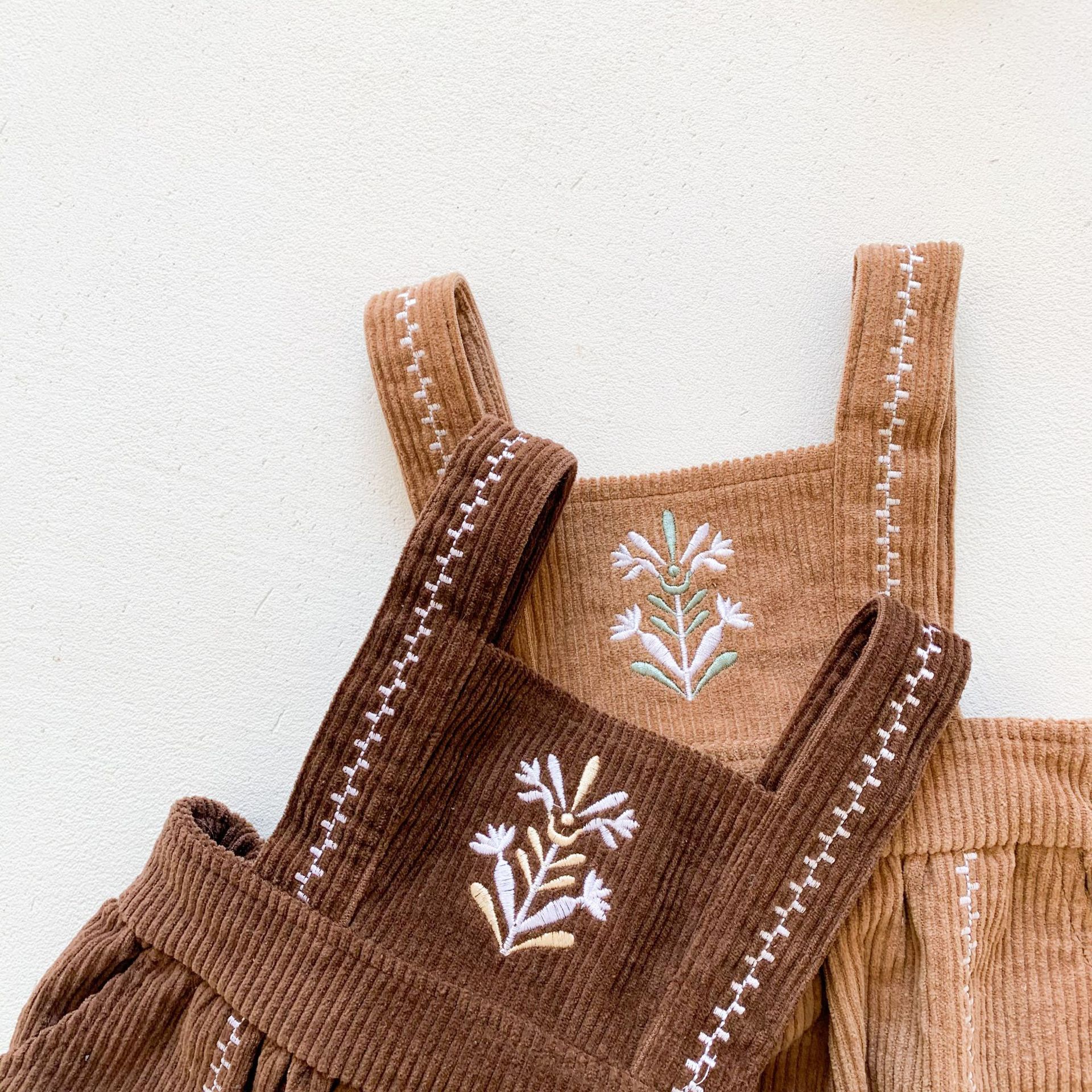 Color: beige base coat, pink purple base coat, brown overalls, khaki overalls