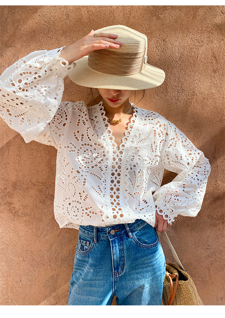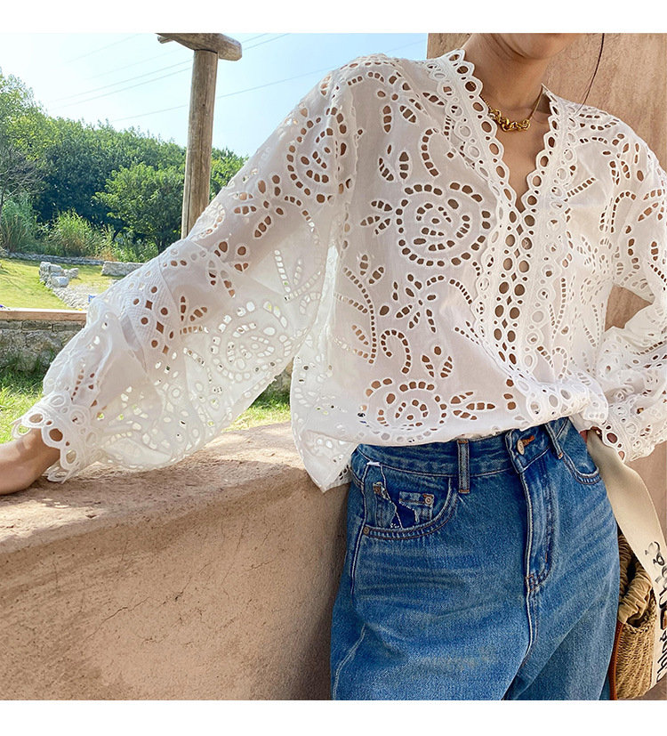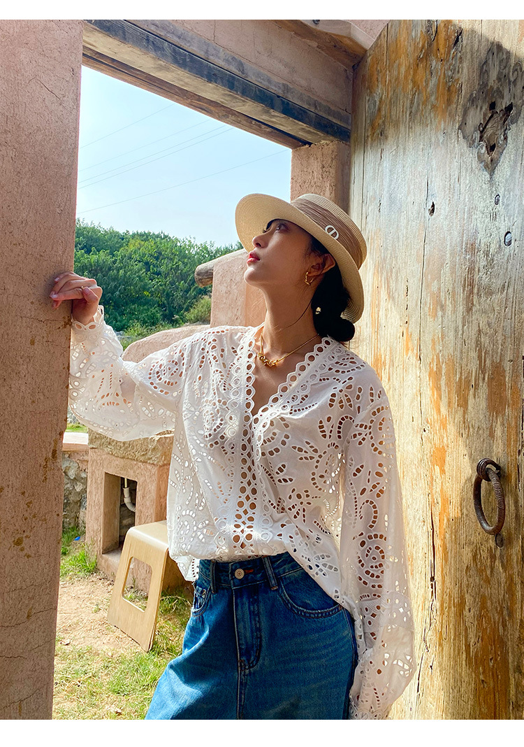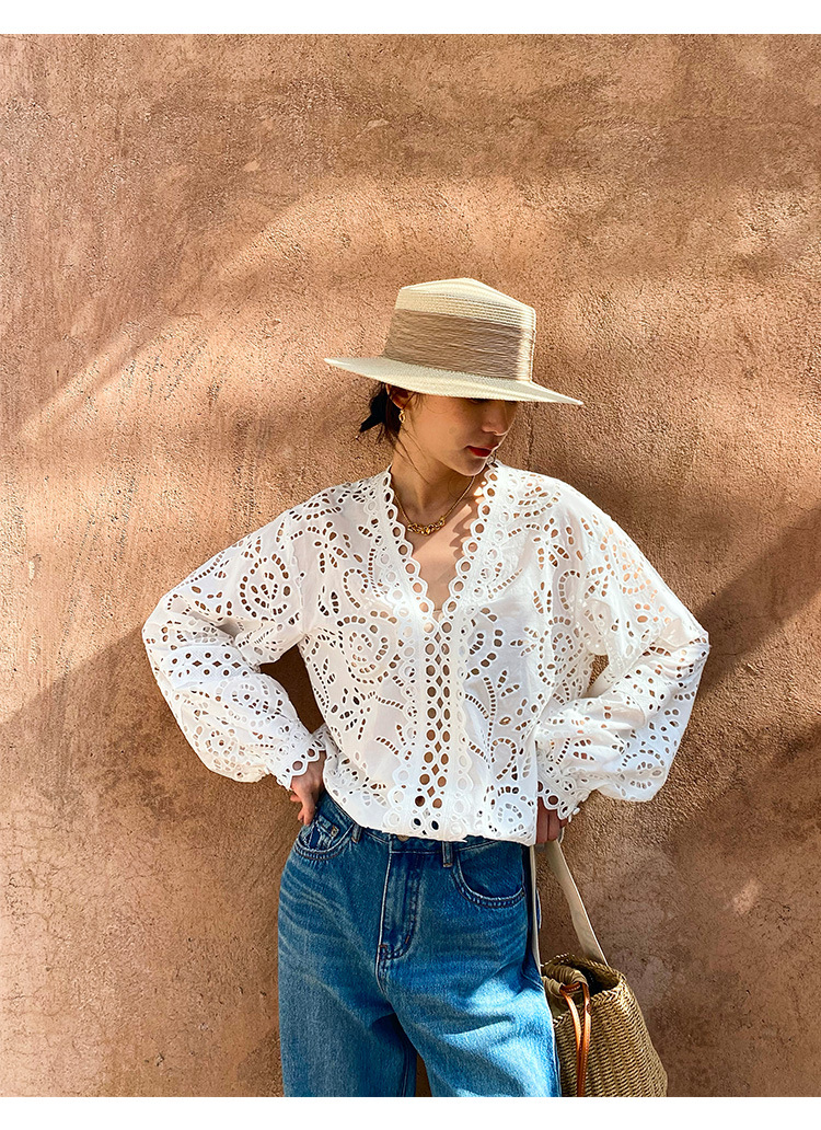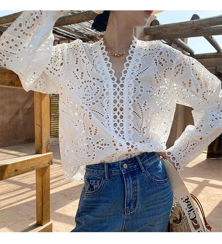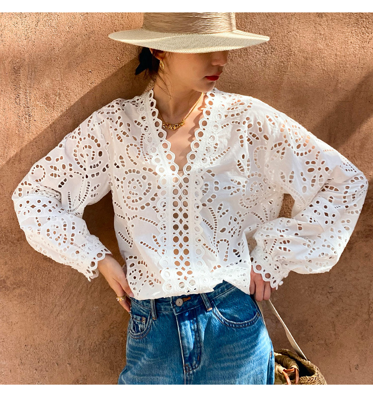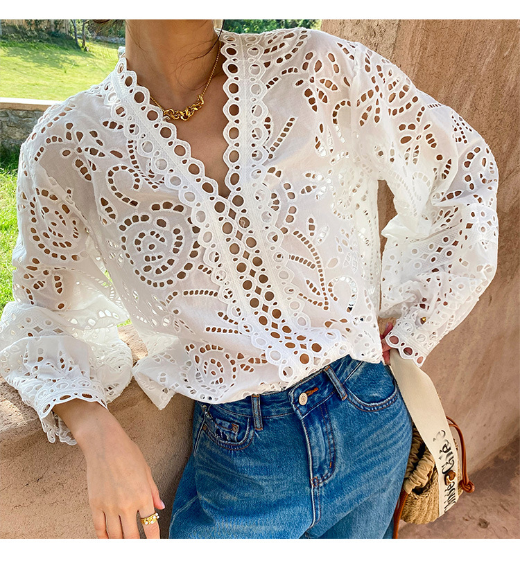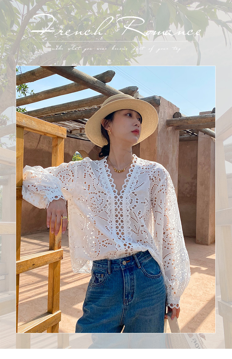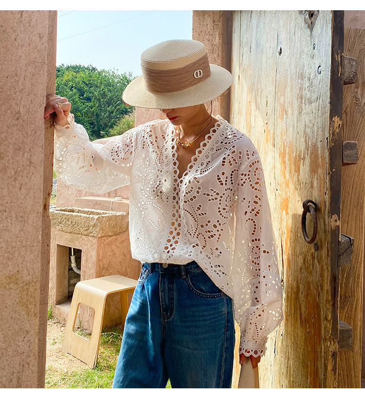 Cotton Embroidered French White Shirt Women's Long Sleeve Design Sense