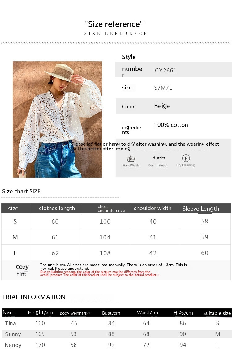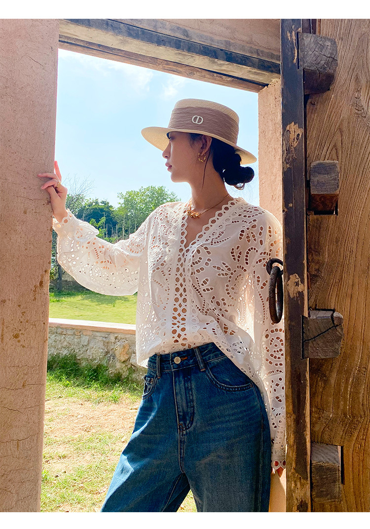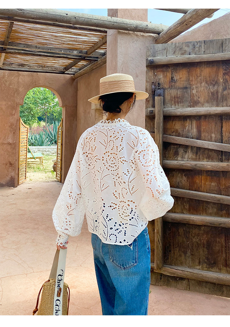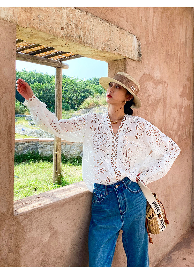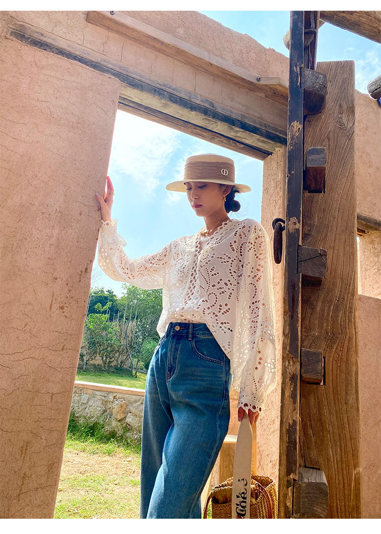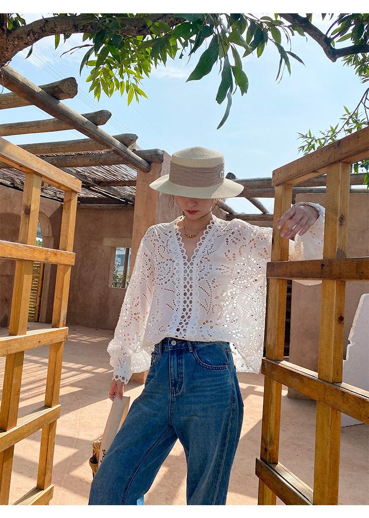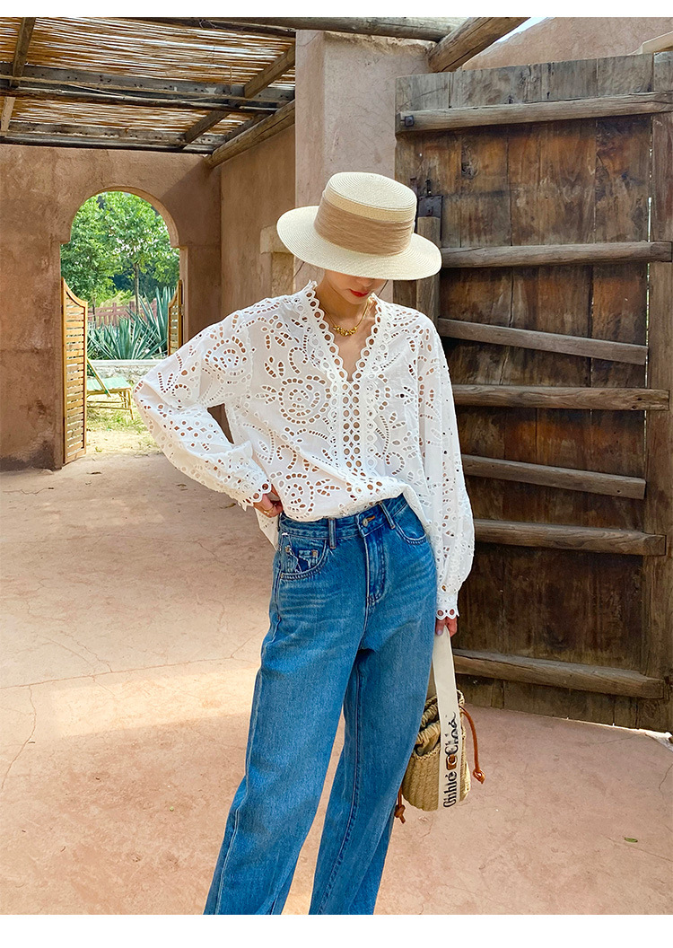 Cotton Embroidered French White Shirt Women's Long Sleeve Design Sense