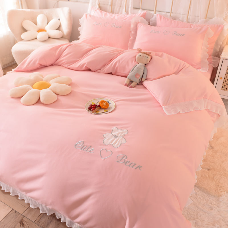 Size specification: 1.2 bed sheet three-piece set (quilt cover 150x200, 1.5 bed sheet four-piece set (quilt cover 200x230, 1.8 bed sheet four-piece set (quilt cover 200x230, 2.0 bed sheet four-piece set (quilt cover 220x240, 2.2 sheet four-piece set (quilt cover 220x240