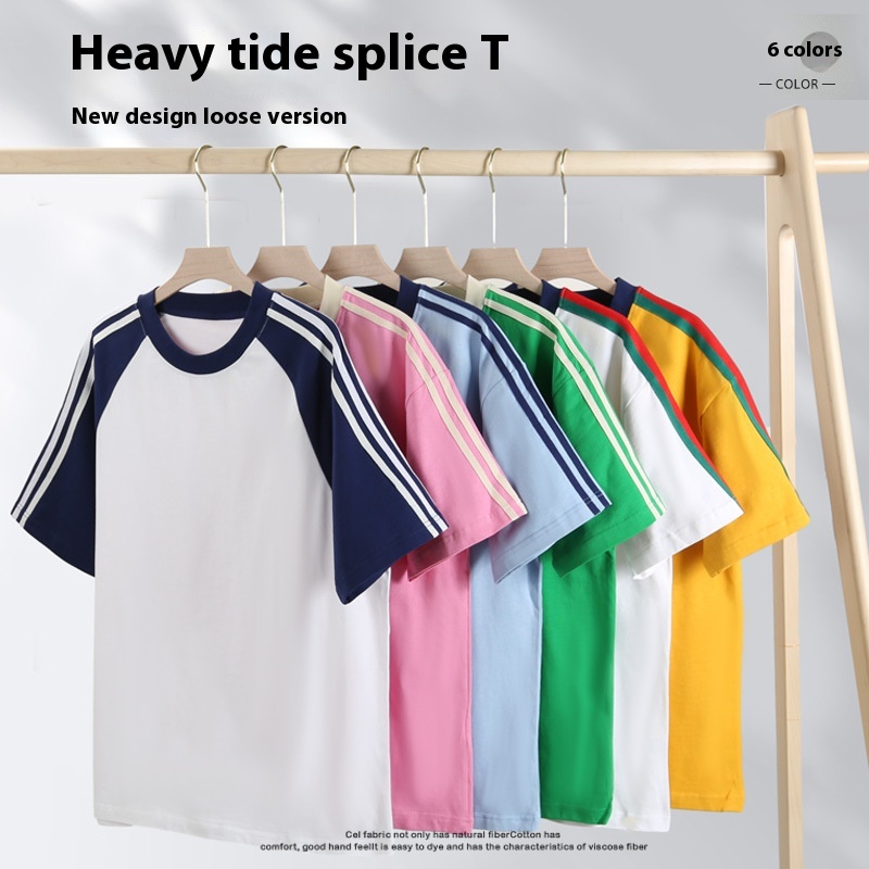 Color: white raglan double stripes, yellow stripe, White Stripes, light blue two sleeves, green two sleeves, Pink two sleeves