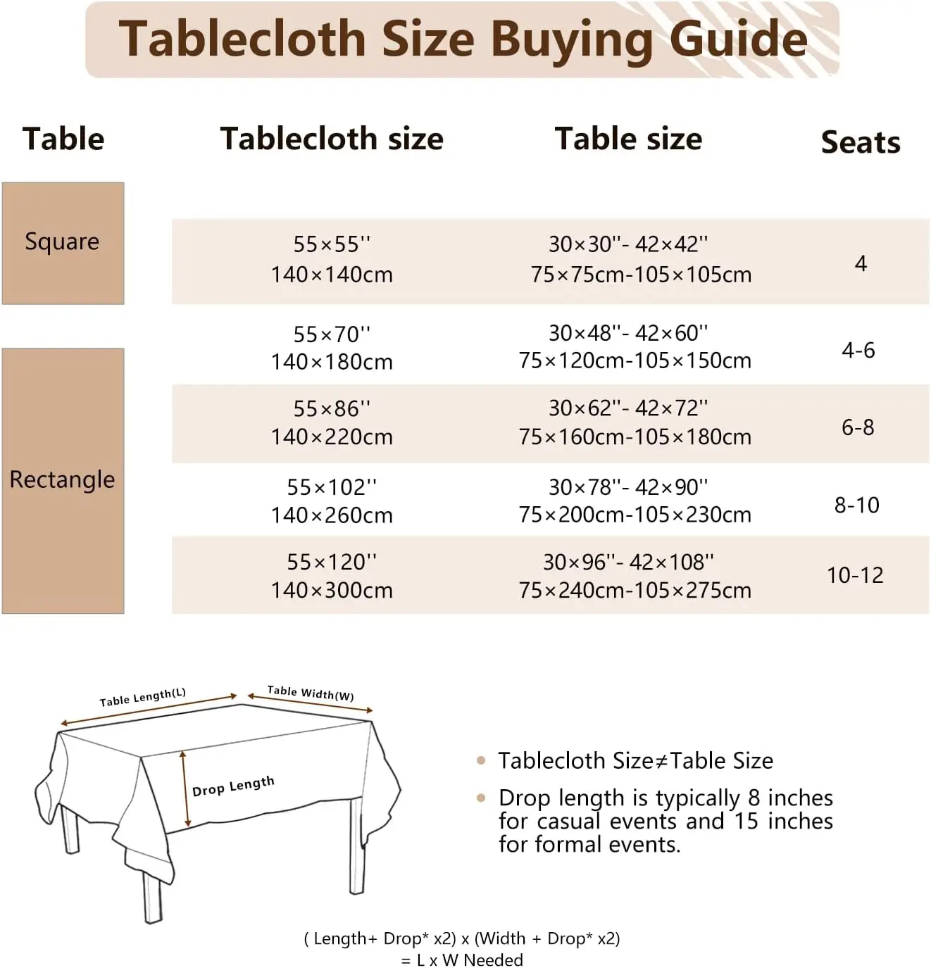 Reminder: Please measure your dining table before buying. The size of the tablecloth is usually larger than the table. If you have any questions about size selection and quality, please feel free to contact us