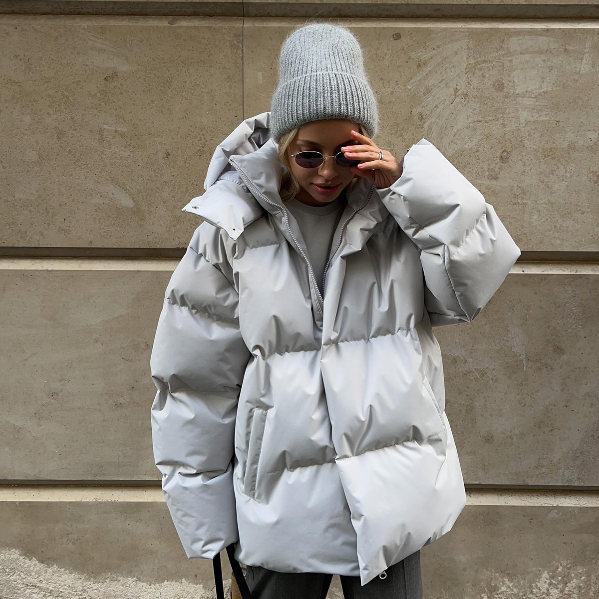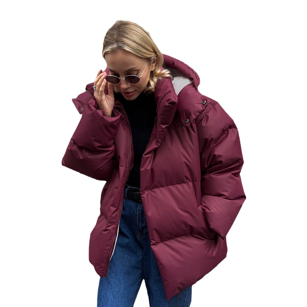 Cotton-padded Coat Loose-fit Cotton Jacket Solid-color Hooded Cotton Garment
