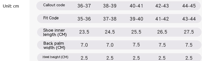 Heel height: 2.5-3.5cm