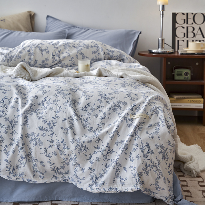 Cotton Washed Double-layer Yarn Four-piece Bedding Set