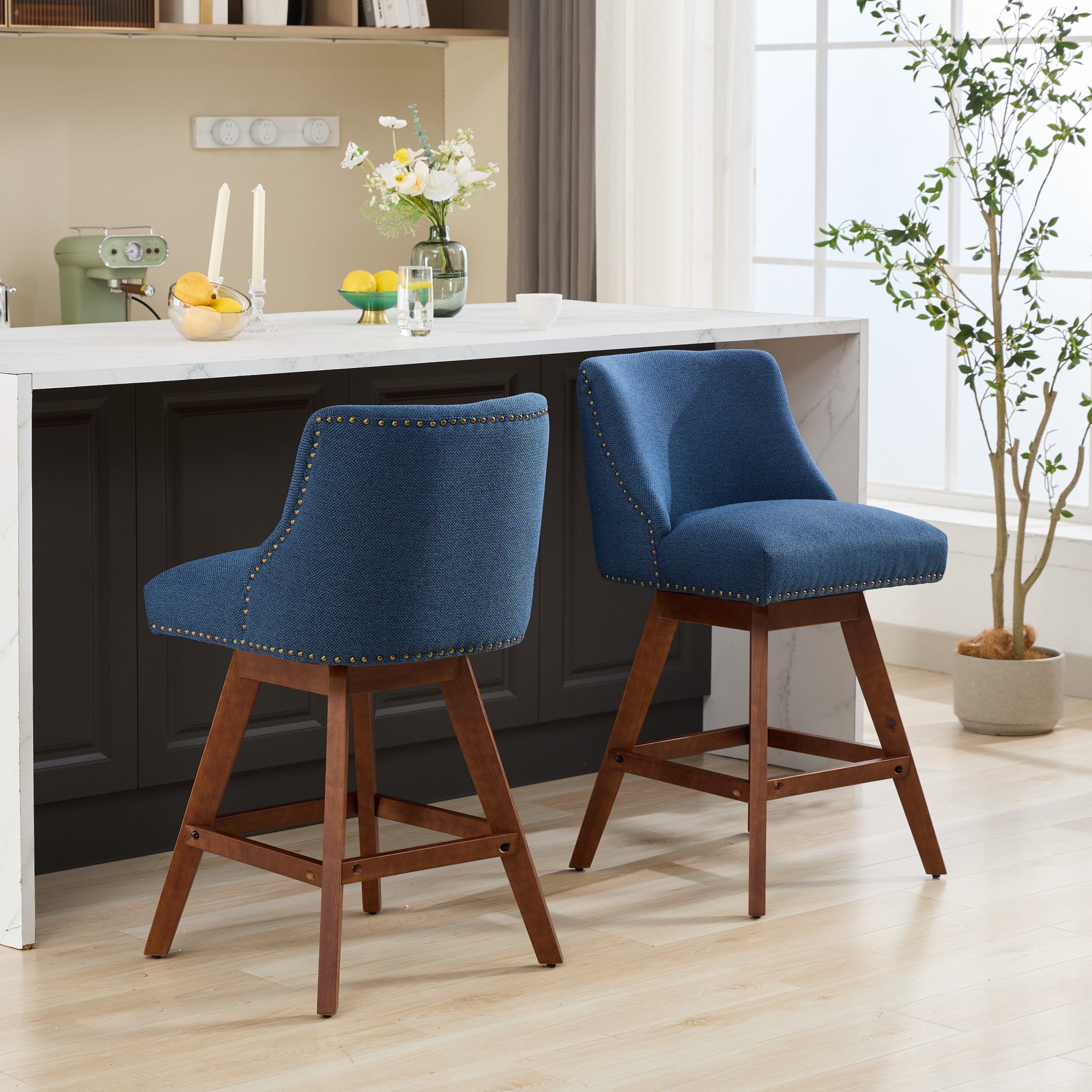 Product Name:Counter Height Swivel Barstools, 26'' H Seat Height Upholstered Bar Stools Set of 2, Fabric in Blue