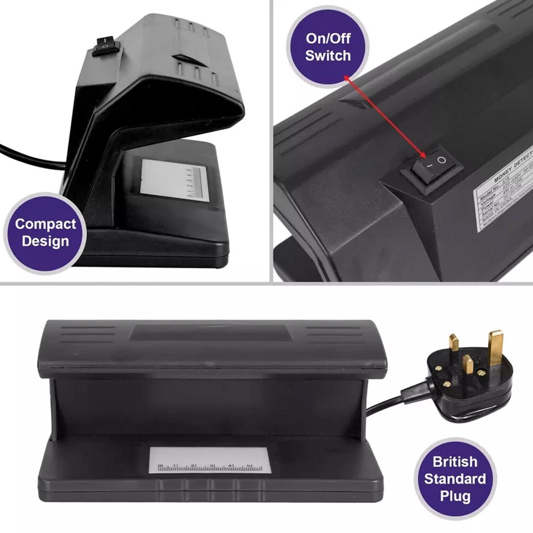 | Counterfeit Uv Fake Black Light Money Note Detector Bank Checker Forged Tester Description Product Details: -Worried about receiving fake money and losing out on money? Introducing the new counterfeit UV money detector. Ideal for shops, restaurants, retail stores, pubs, clubs and anywhere that handles money. Alternatively, can be the perfect novelty gift for your friends and family. -The detector has a 4W ultraviolet super bright tube light and it can even detect UV features in older or washed notes. -Works perfectly in lit environments and it has an integrated reflector to amplify UV light. It is extremely easy to use, small, compact and lightweight. - Check the authenticity of money and credit cards ULTRA BRIGHT Complete with a 4W ultraviolet super bright tube to detect UV features in older and washed notes IDEAL FOR Shops, restaurants, pubs, clubs, retail stores and anywhere that handles cash -Easy to use, small, compact and lightweight. Specification: Size:18.3*8.2*8.8 Detection method: UV Color: Black Package Content : 1 x Counterfeit money detector 1 x Money Clip