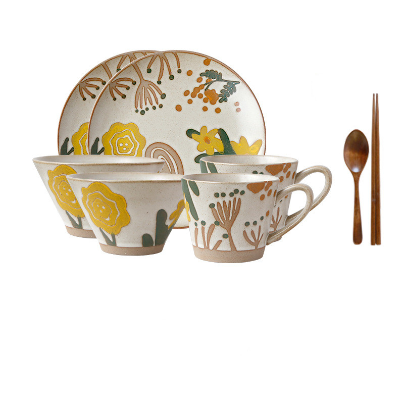 Color: butterfly tableware - 5 inch rice bowl, butterfly tableware - mug, butterfly tableware - 8.5 inch plate, butterfly tableware - two person food set